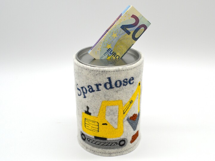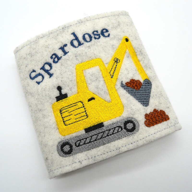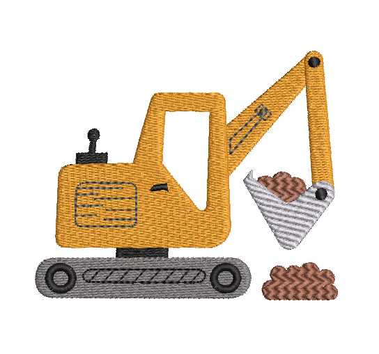 enthalten in vier Größen. Er schaufelt die Erde und baggert, schönes Stickbild für die Kleinsten Baggerfans. Man kann das Bild auf Kissen, Taschen, Spardosen sticken.