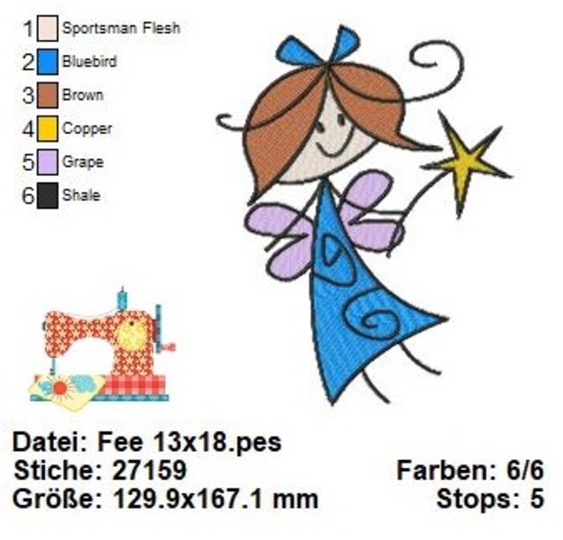 Diese bezaubernde Stickdatei zeigt eine freundliche Fee mit ihrem magischen Zauberstab. Das Design ist voller Fantasie und Charme, perfekt für Kinder, die von Märchen und Magie fasziniert sind. Die Fee ist liebevoll detailliert, mit zarten Flügeln, einem funkelnden Kleid und einem Zauberstab, der bereit ist, Wünsche zu erfüllen.