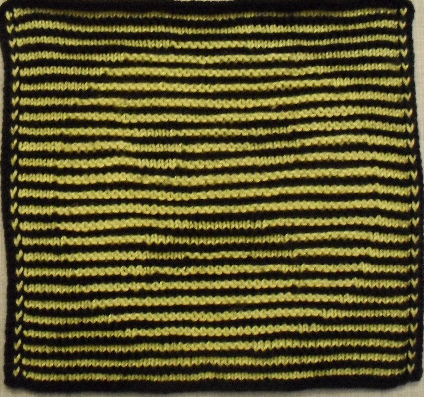 Benötigt wird Baumwollgarn in zwei Farben, gesamt ca. 40 Gramm, Nadelstärke 2 1/2 oder 3, je nach Material und Strickweise, es muß sehr fest gestrickt werden!