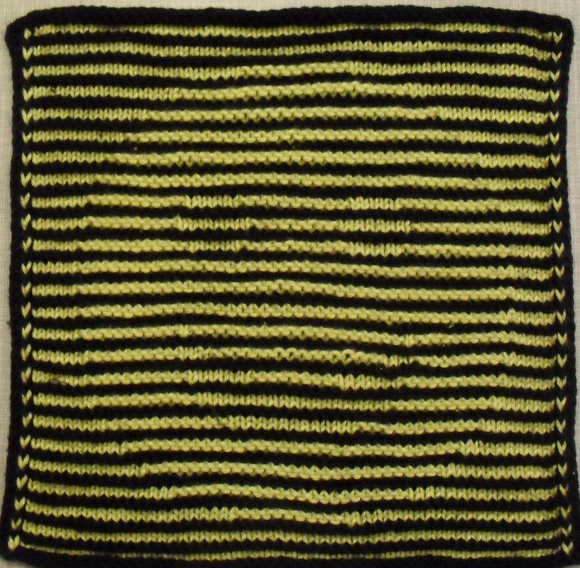 Benötigt wird Baumwollgarn in zwei Farben, gesamt ca. 40 Gramm, Nadelstärke 2 1/2 oder 3, je nach Material und Strickweise, es muß sehr fest gestrickt werden!