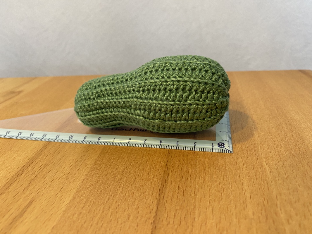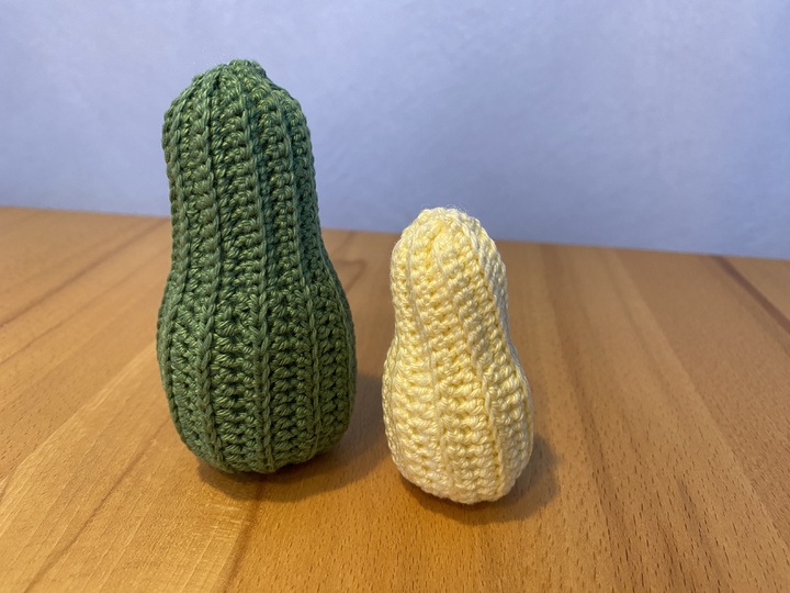 Hier erhältst du eine ausführliche und detailiert beschriebene Häkekanleitung, um Zucchini in gelb oder grün in 2 Größen selbst zu häkeln.
