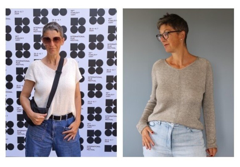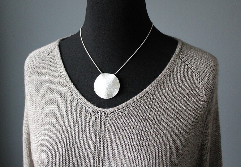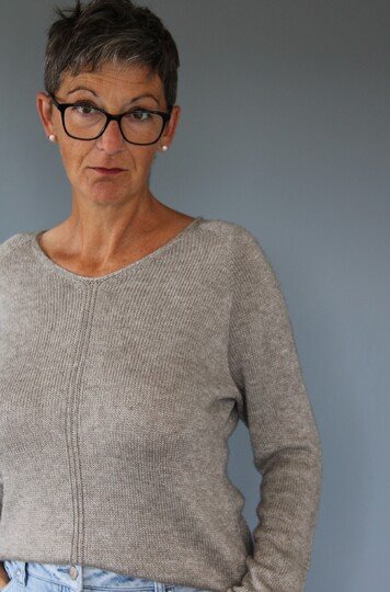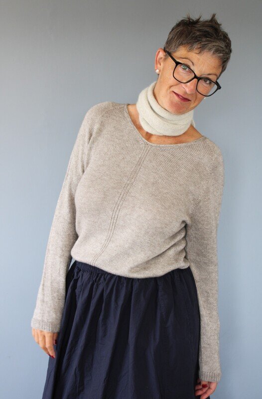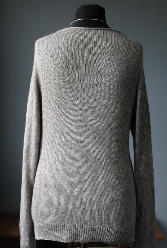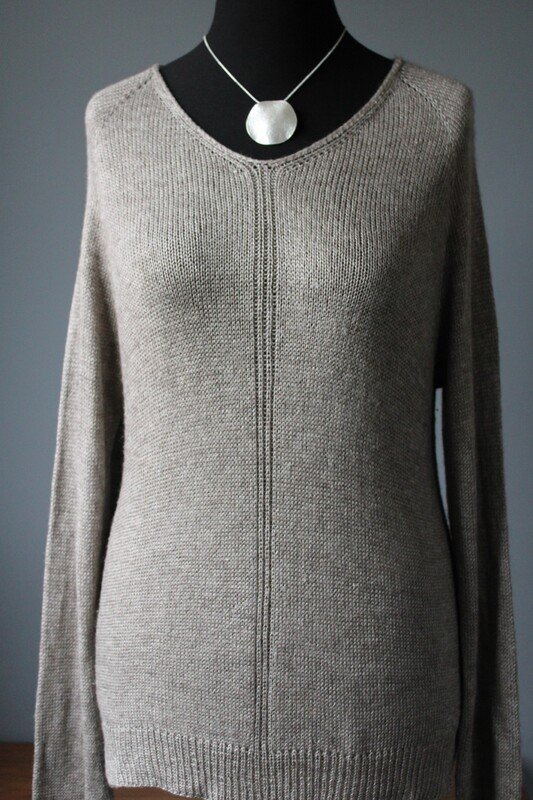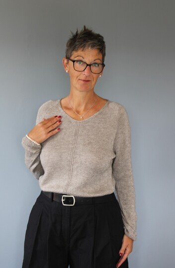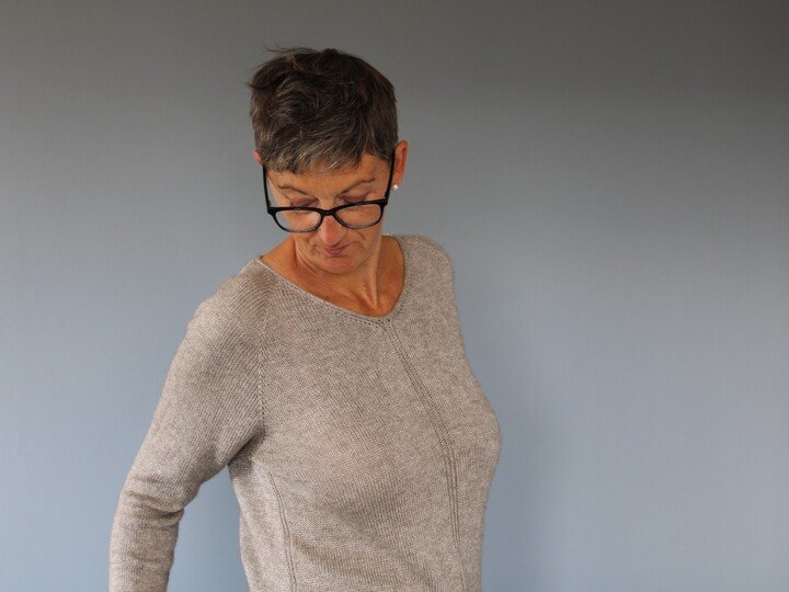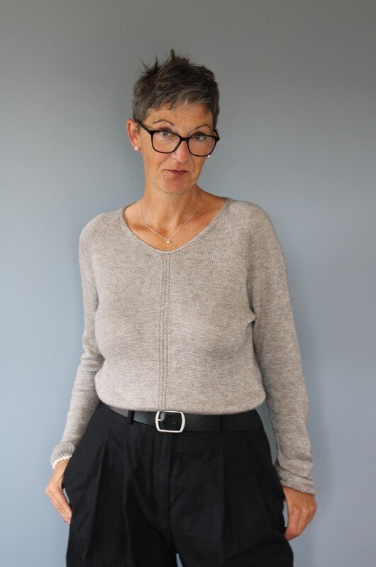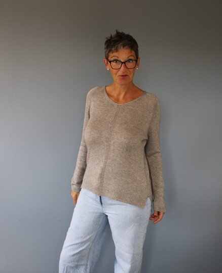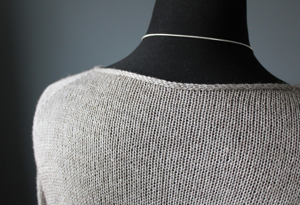 Moon River ist ein top down gestrickter Raglansweater mit V-Ausschnitt und kurzen oder langen Ärmeln. Die Form ist sportlich-elegant.