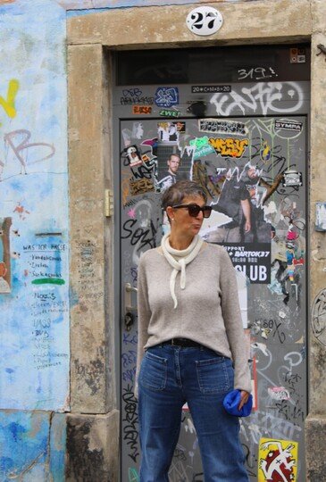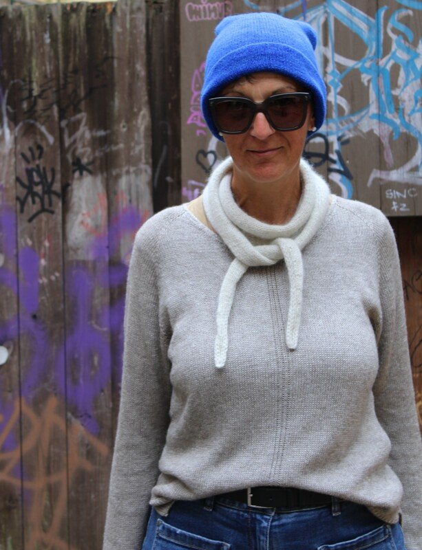 Auf den Fotos siehst du mich mit Moon River, Tilda Schal und Lottchen Mütze.