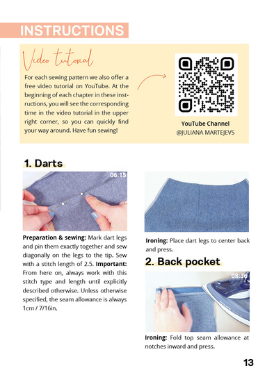 Das Schnittmuster als PDF Ebook für deinen Jeansrock "The Frida Skirt". Mit schriftlicher, bebilderter Nähanleitung und kostenloser Video-Anleitung auf unserem YouTube-Kanal JULIANA MARTEJEVS - Das DIY-Modelabel oder unserer Website (s. Profil).