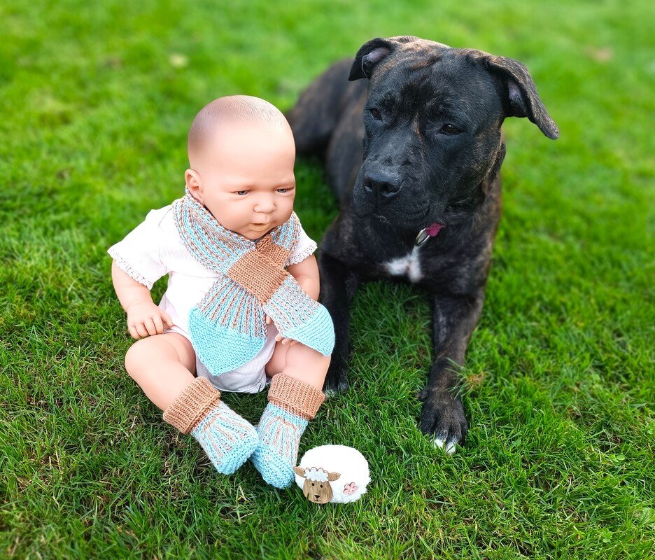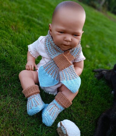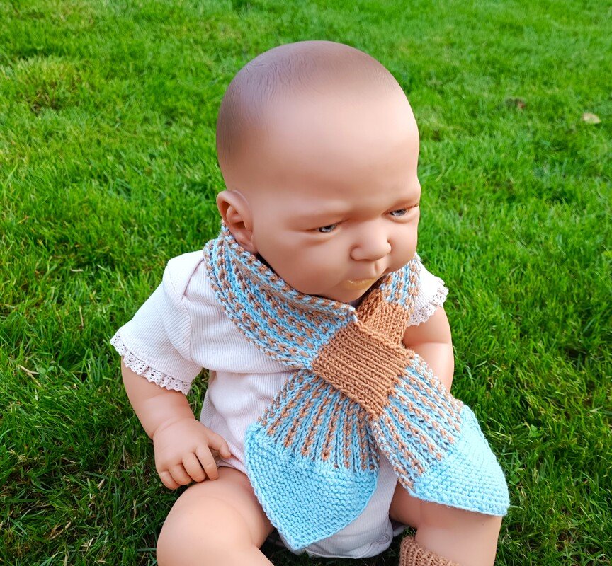 Dadurch dass zwei Farben verwendet werden gibt es viele tolle Kombinationsmöglichkeiten und das Set kann passend für kleine Jungs und Mädels gestrickt werden und sieht immer toll aus.