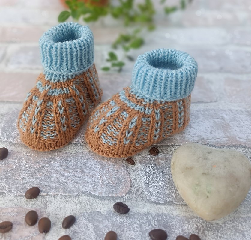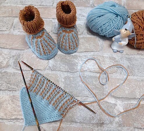 Ihr bekommt hier die Strickanleitung für meine zweifarbigen Babyschuhe Drillis und den dazu passenden Steckschal. Den Namen haben die Schuhe bekommen weil ich sie das erste Mal für Drillinge gestrickt habe. Da Drillinge etwas ganz besonderes sind sollten auch die Schuhe besonders sein. Mit diesem Muster konnte ich sie gleich aber doch unterschiedlich stricken.