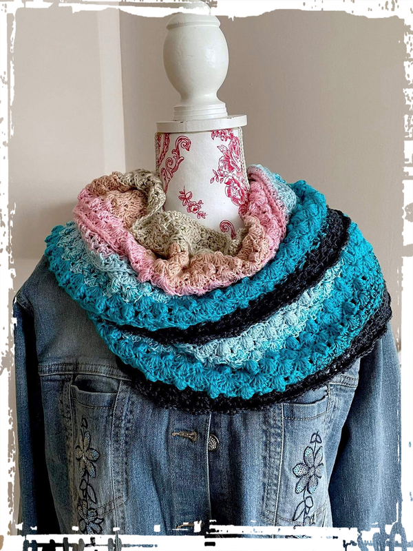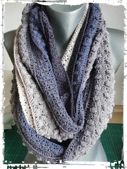 Der Sommer Loop eignet sich super für 4 fädige Bobbel Wolle. Egal ob mit Farbverlauf oder einfarbig der Loop ist immer ein Hingucker. Mit dicker Wolle gearbeitet hält er Euch auch im Winter schön warm.