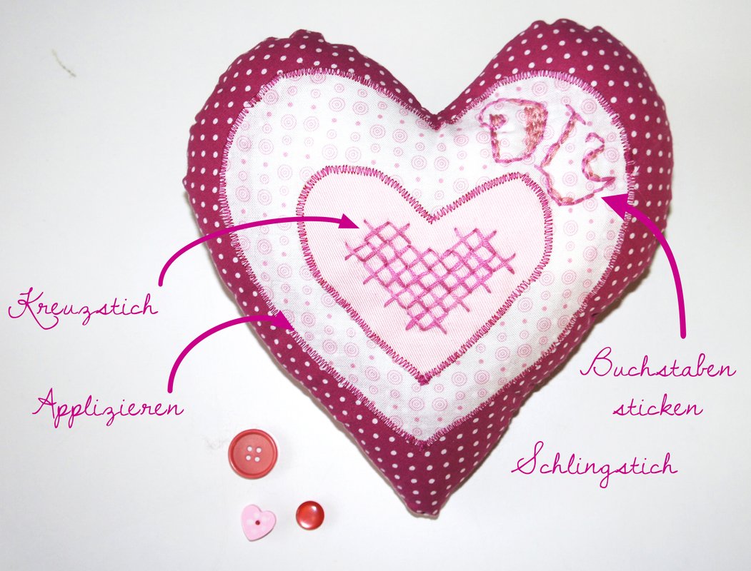 Ein bunter Mix an Herzchen erwartet Dich hier in dieser Nähanleitung. Große, kleine, bunte, bestickte, genähte und applizierte Herzen möchte ich Dir hier vorstellen. Verschenke sie an Deinen Liebsten, Deine Lieben, Kuschel damit auf dem Sofa oder dekoriere Dein Heim damit. Auf jeden Fall werden sie Dich und Deine Umgebung mit Liebe und Freude erfüllen.