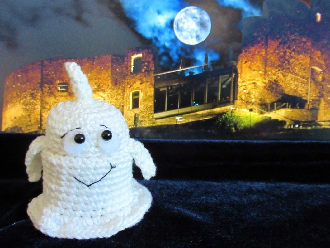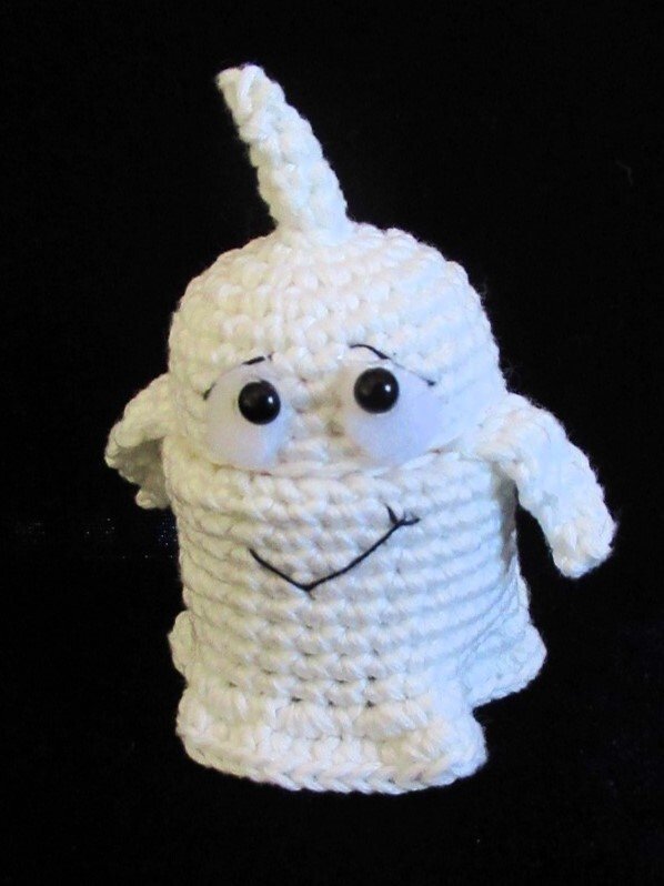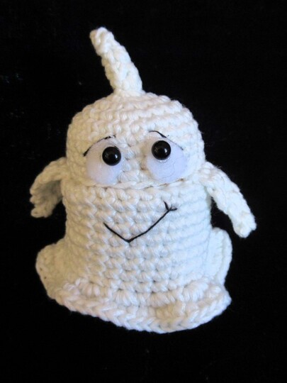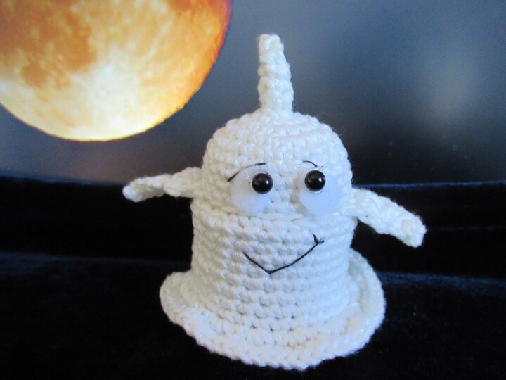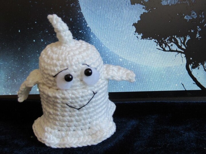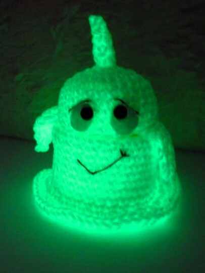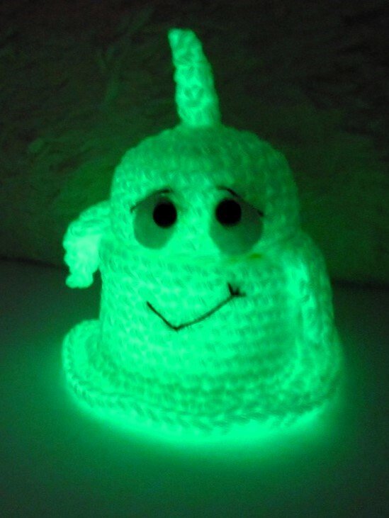 Dieses kleine Gespenst ist überhaupt nicht gruselig, sondern so richtig niedlich! Es wird um die leere Hülle eines Überraschungseis gehäkelt und muss daher nicht mit Bastelwatte gefüllt werden. Das Gespenst kann man öffnen und innen eine kleine Süßigkeit oder Überraschung verstecken. Und der Clou: wenn du nachtleuchtendes Garn dafür verwendest, dann leuchtet es im Dunkeln grünlich.