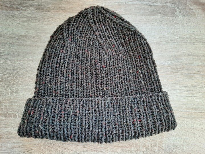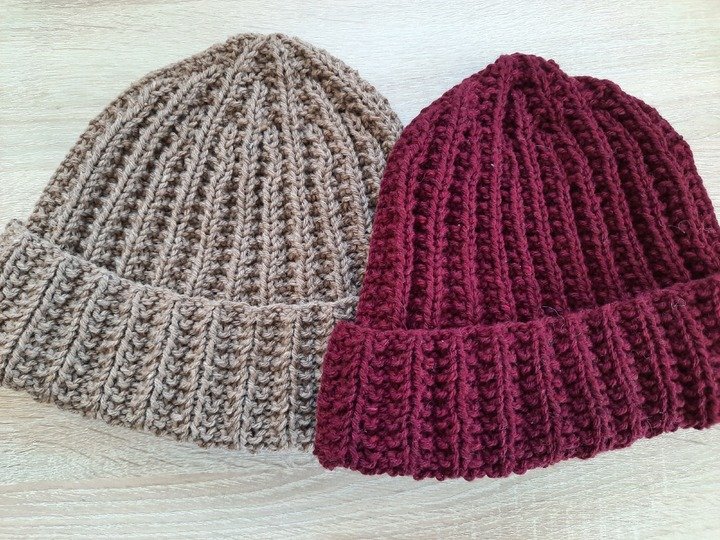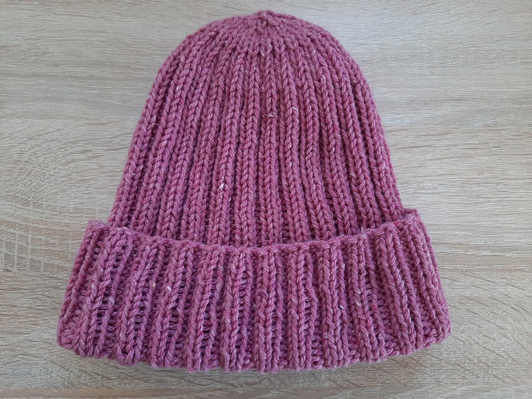 Da die Rippenmuster sehr elastisch sind, passen die Mützen für alle Erwachsenen. Die Länge kann beliebig angepasst und der Umschlag auch weggelassen werden.