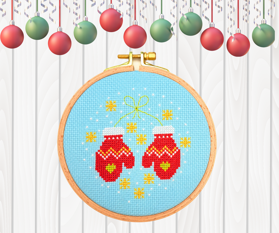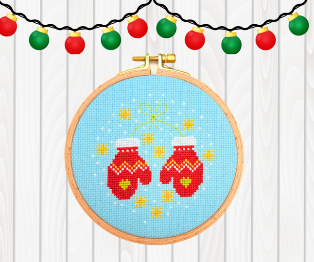 Ich habe die Handschuhe auf helltürkisen Aida von DMC ( 5,4 Stiche pro cm bzw 14ct ) gestickt.