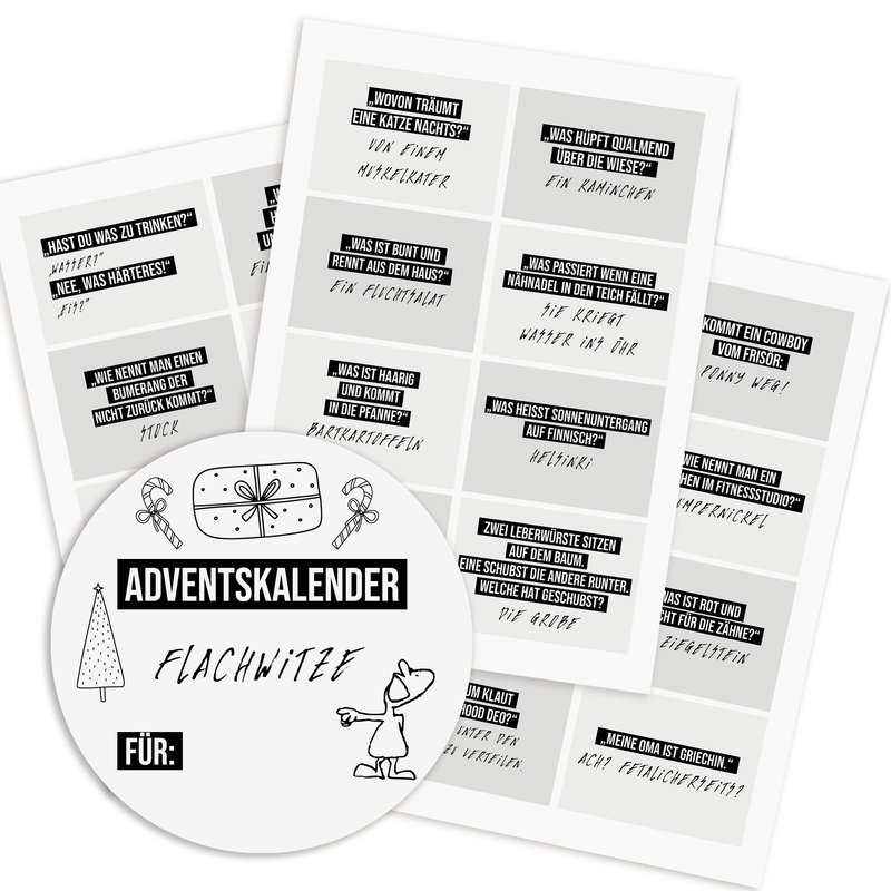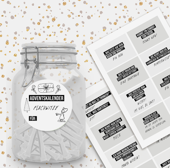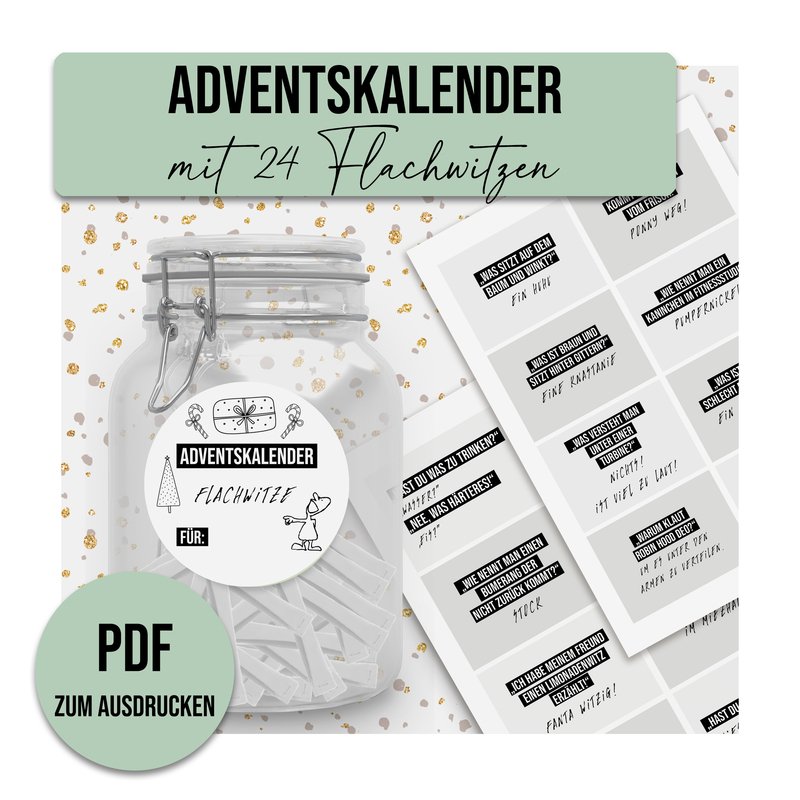 Du erhältst 3 DIN A4 Seiten mit insgesamt 24 Sprüchen. Diese schneidest Du nach dem Ausdrucken aus und kannst die 24 Zettel nach Herzenslust verpacken.