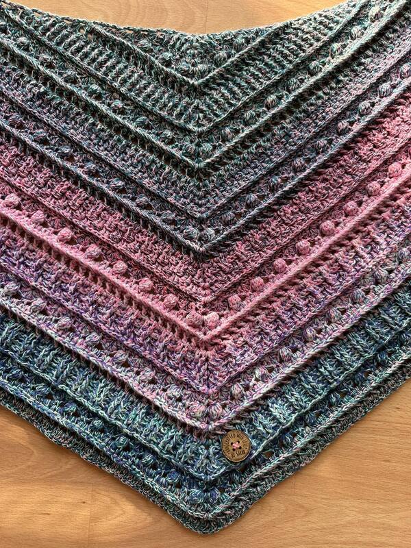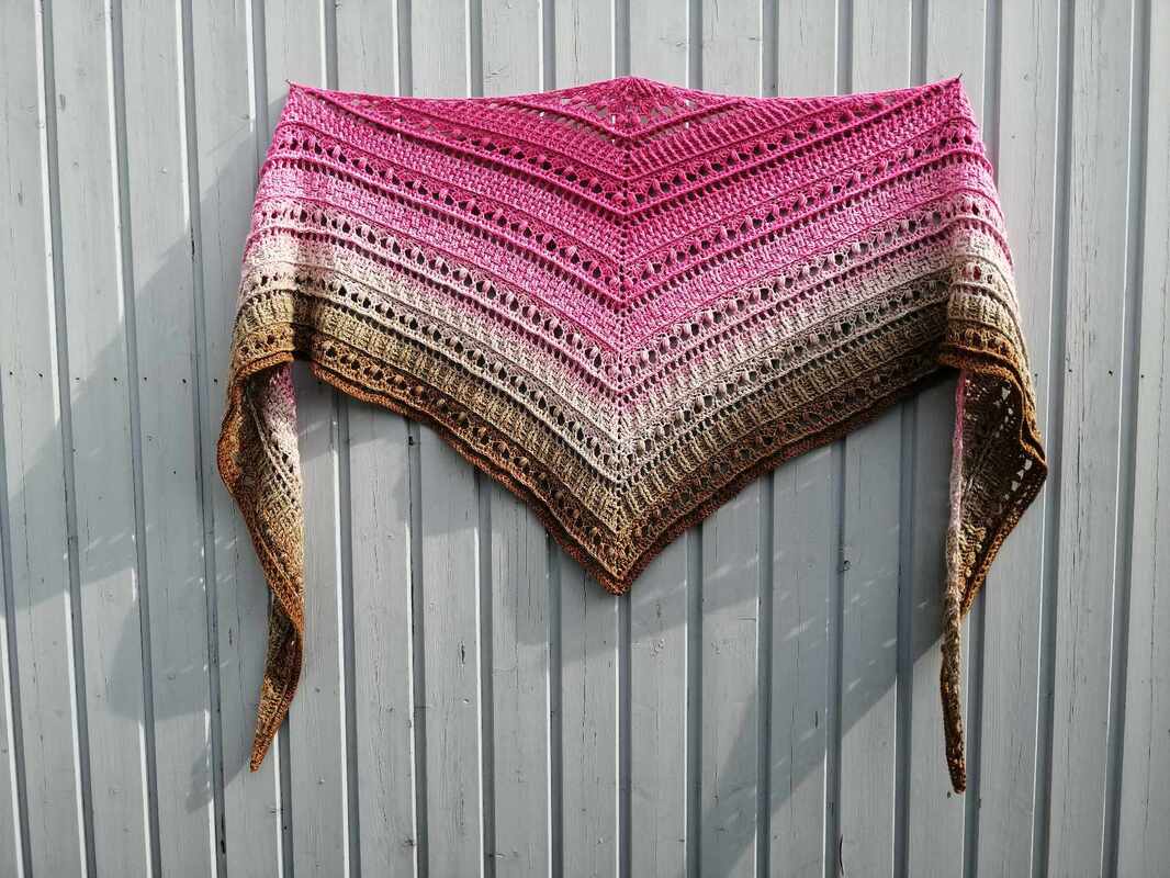Durch andere Wolle, andere Häkelnadelstärke und je nachdem ob du fester oder lockerer häkelst, kann die Größe abweichen. Du kannst das Tuch auch ohne Probleme etwas kleiner häkeln und vorzeitig beenden.