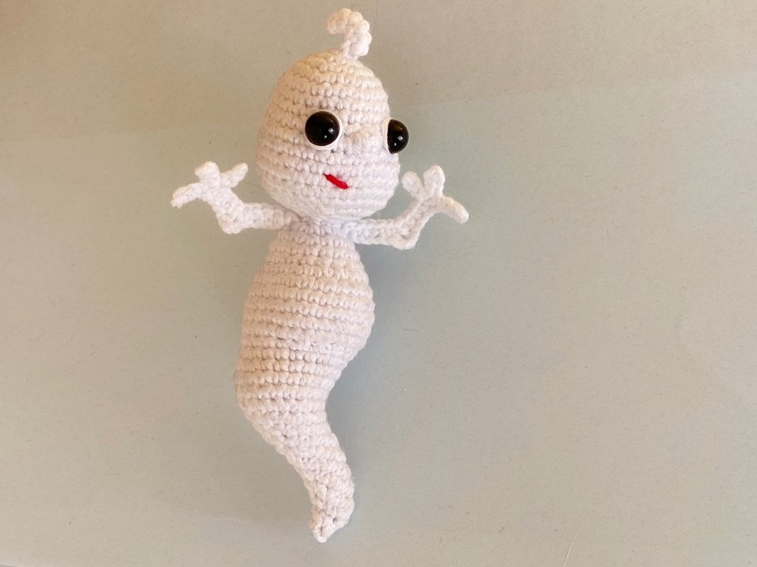 Kleiner Halloween-Geist mit Hut. Häkelanleitung.