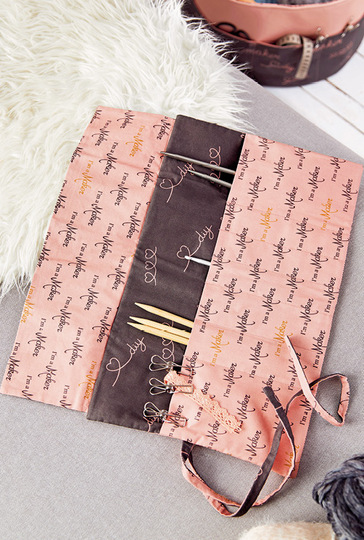 Die einzelnen Fächer der Nadelmappe bieten viel Platz für die Strick- und Häkelnadeln. Für den Transport lässt sich die Mappe mithilfe schmaler Bindebänder einfach zusammenrollen.