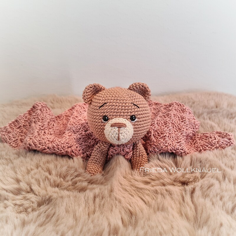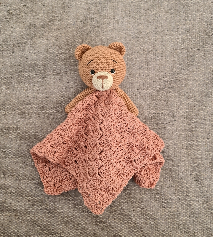 Dieses süße Schnuffeltuch ist der perfekte Begleiter für kleine Kinderhände. Ob als Kuscheltier oder Seelentröster, dieses Bärchen-Schmusetuch ist ein Alleskönner. Das Tuch ist im Corner to Corner Stil gehäkelt. Dieses Muster wird in der Anleitung Schritt für Schritt und mit Detailbildern erläutert.