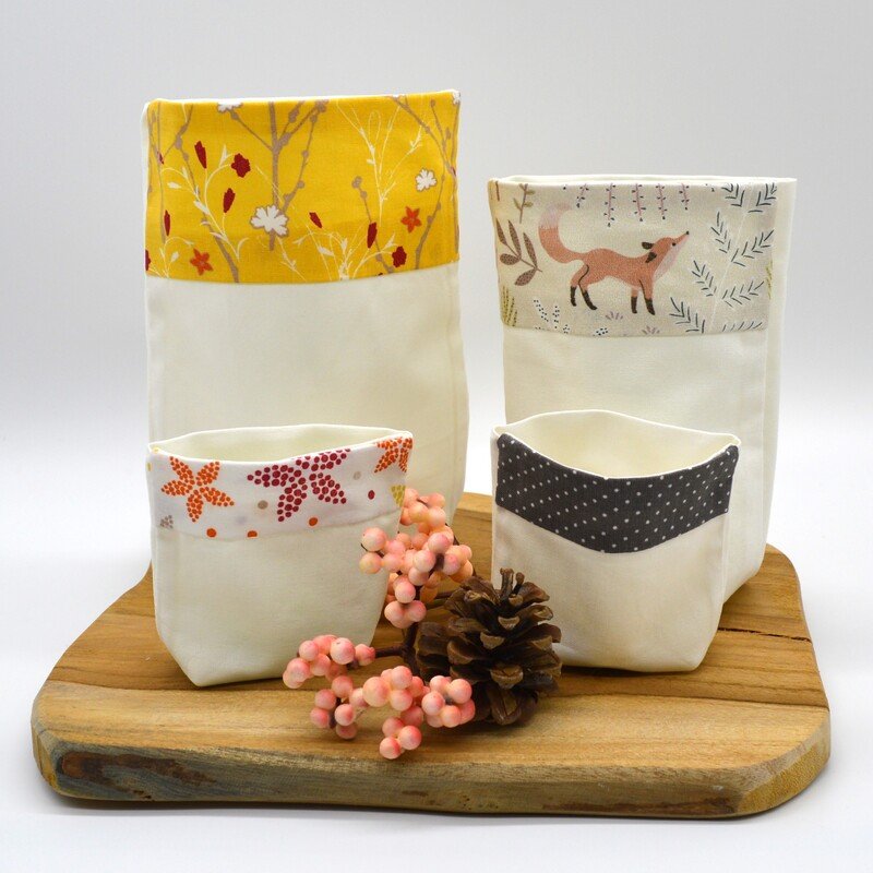 Sie werden 2lagig aus Baumwollstoff genäht, das heißt, wenn ihr ein Stickbild aufstickt, liegt die Rückseite der Stickerei im Innern, fein sauber verpackt. Auf der Vorderseite wird ein bunter Streifen Baumwollstff mit eingenäht. Der Beutel kann mit Stickmotiven ergänzt werden. Für das Einfügen der Stickbilder muss der Umgang mit der Stickmachine oder mit einer Software bekannt sein. Dies wird in der Anleitung NICHT erklärt.