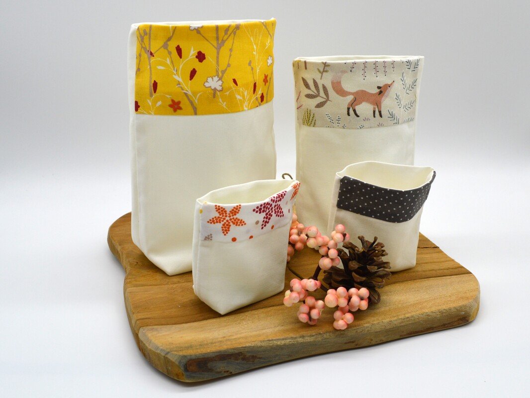 kleine Stoffbeutel, in die ein LED Teelicht oder auch ein Glas mit Blümchen eingestellt werden kann. Süße Deko für die Fensterbank und ein liebevolles Mitbrings`l.