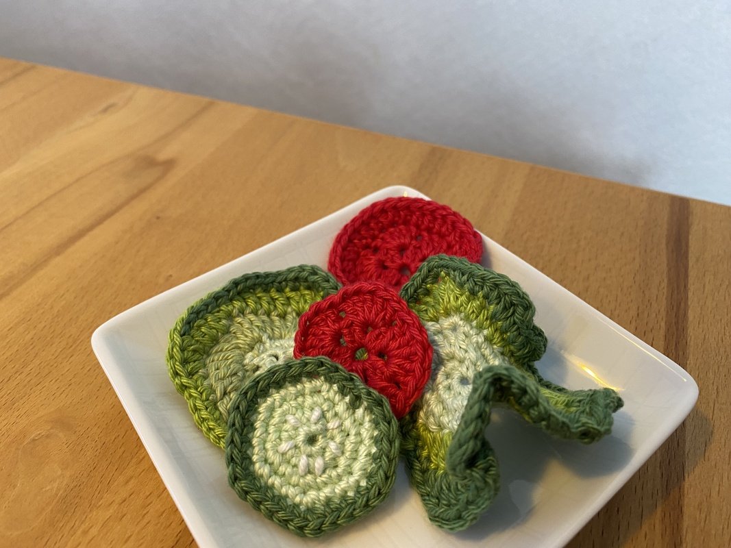 Tipp: Super zur Verwertung eurer Wollreste geeignet! Mit ein paar Scheiben Tomaten oder Gurken entsteht recht einfach ein abwechslungsreicher Salat für die Spielküche ️
