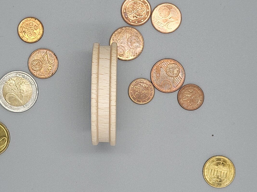 in meinem Fall ist der Geldsack 14 cm hoch und die breiteste Stelle ist 16cm.