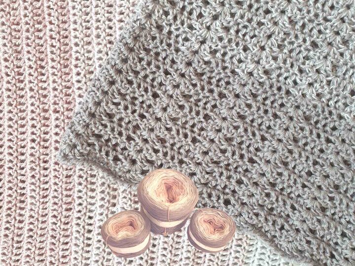 Du kannst auch einfarbig häkeln, dann reicht ein Bobbel mit ca. 2000/2100 m aus.
