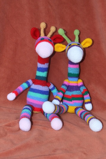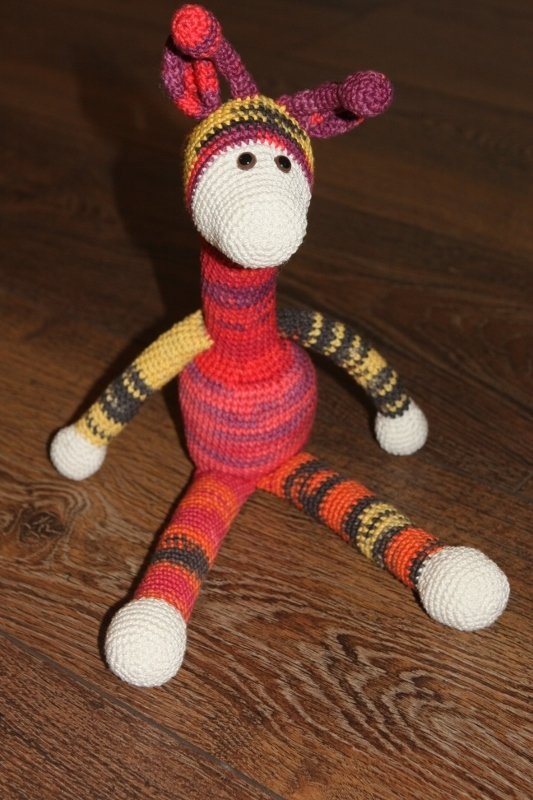 Das fertige Tierchen wird bei Verwendung von Schachenmayr Bravo und Nadelstärke 2,5 ca. 50 cm von Kopf bis Fuß.