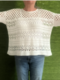 Der Pulli ist in 2 Teilen gehäkelt, Vorder- und Rückenteil ohne Abnahmen oder Zunahmen, also ein sehr einfacher Schnitt. Die Arme werden angehäkelt. Es werden Luftmaschen, feste Maschen, Stäbchen, halbe Stäbchen und Doppelstäbchen als Kenntnis vorausgesetzt. Du solltest auch schon mal etwas angehäkelt haben, z.B, an einen seitlichen Rand feste Maschen. Manche nennen das auch behäkeln.
