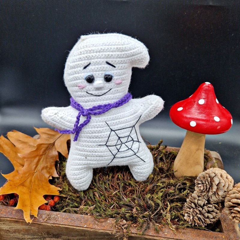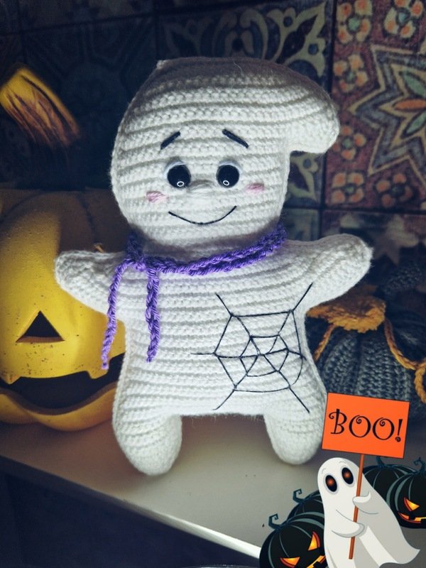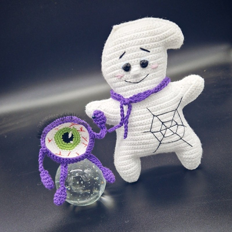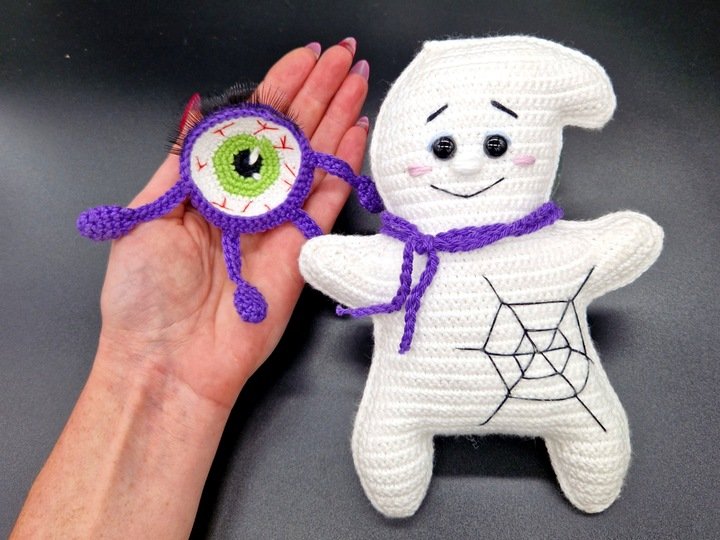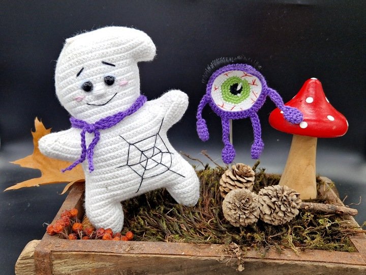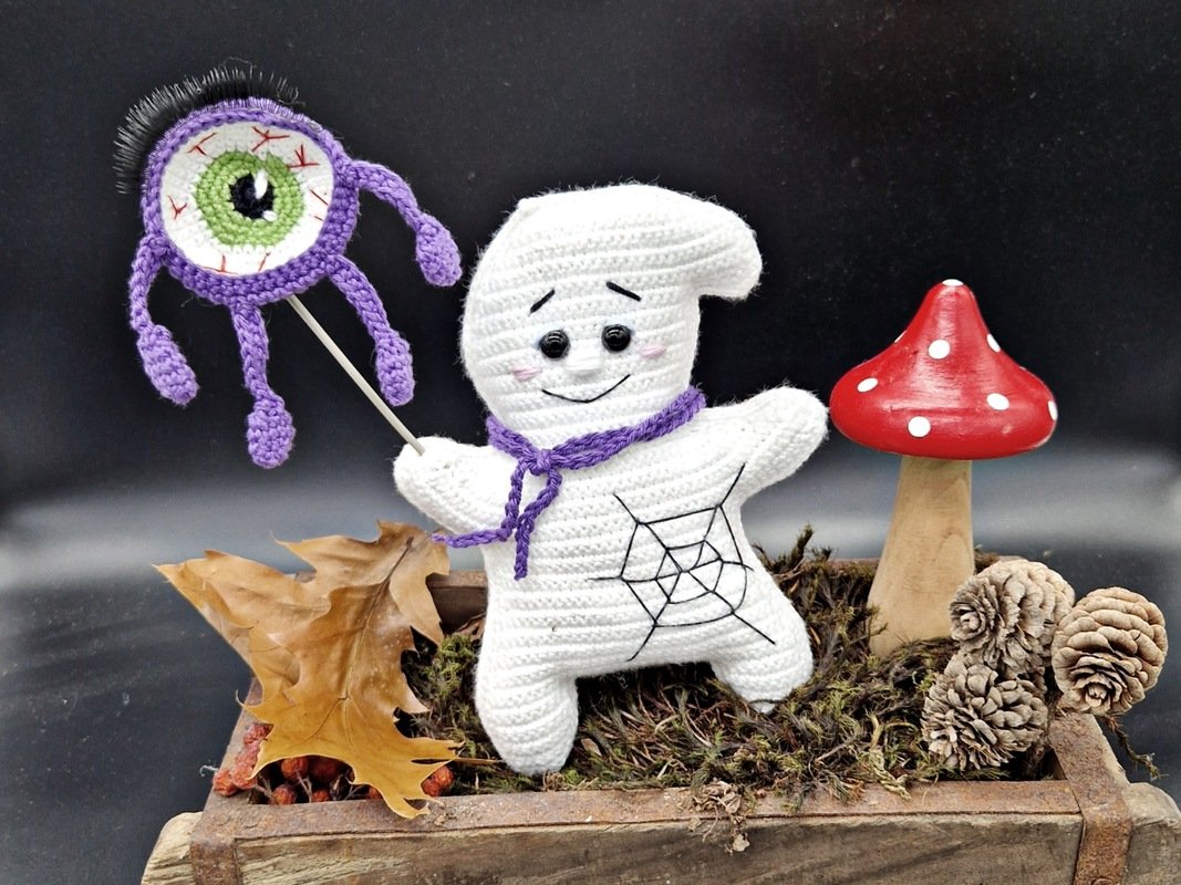 • Das Gespenst wird mit angegebenem Garn ca. 18 cm groß, das Auge ca. 8 cm.