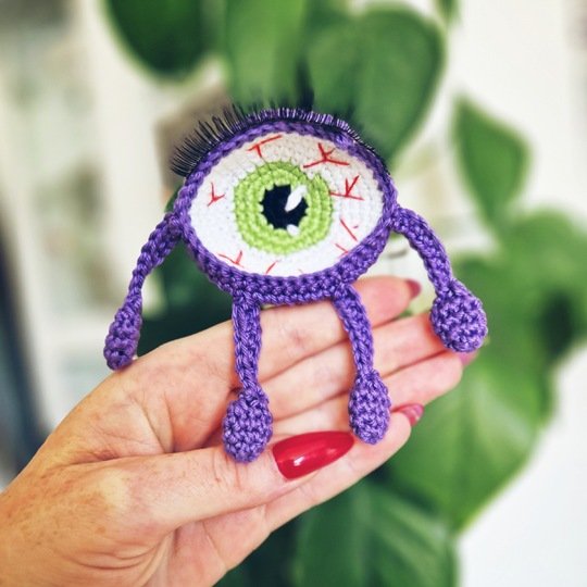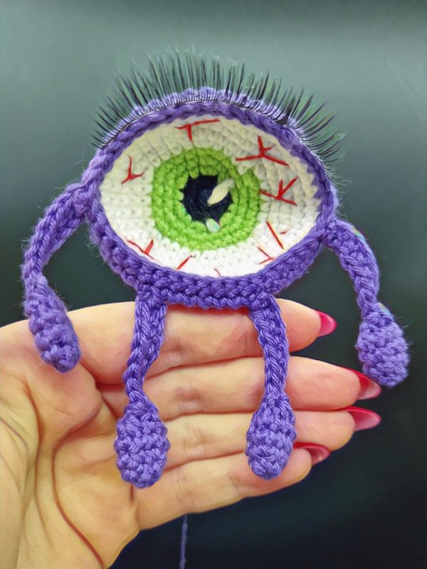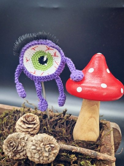 Mit angegebenem Garn wird dein Geist ca. 18 cm, das Auge ca. 8 cm groß.