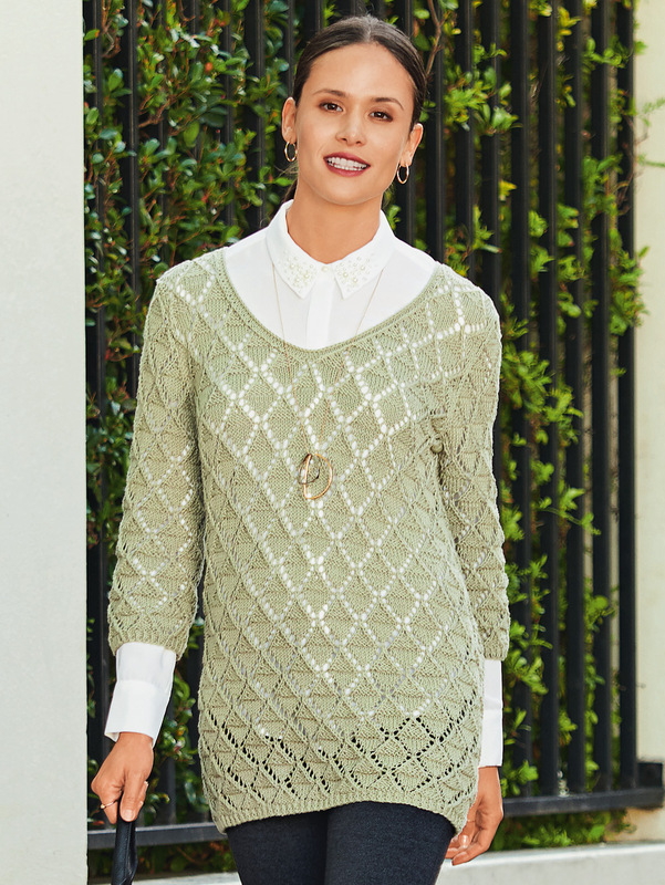 Elegant und trotzdem leger: So zeigt sich dieser Longpulli mit apartem Ajour-Rautenmuster. Durch dieses Muster wirkt der Pullover gleichzeitig feminin und grafisch. Der hat echt Potential zum Lieblingsstück des Kleiderschranks zu werden. Alle Teile werden einzeln von unten nach oben gestrickt und zusammen genäht. Dann folgt noch der Kragen, der sich etwas einrollt um einen sauberen Abschluss zu kreieren. Das wunderschöne Garn gibt es bei Online und gestrickt wird in Nadelstärke 3 und 3,5. Die Anleitung hilft dir bei der Umsetzung, sodass du das Teil in Größe 36/38, 42 und 46/48 bald dein Eigen nennen kannst.