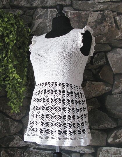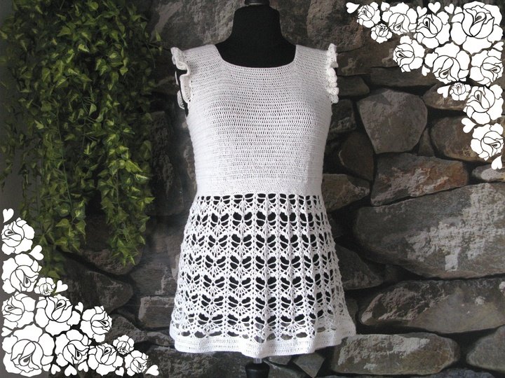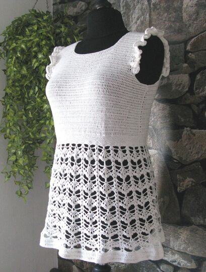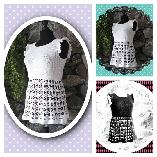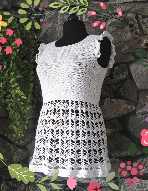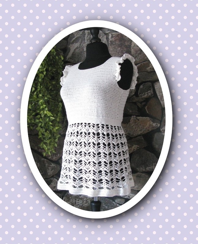 Die Tunika wird in 3 Teilen gehäkelt Vorderteil und Rückenteil wird von unten nach oben gehäkelt.