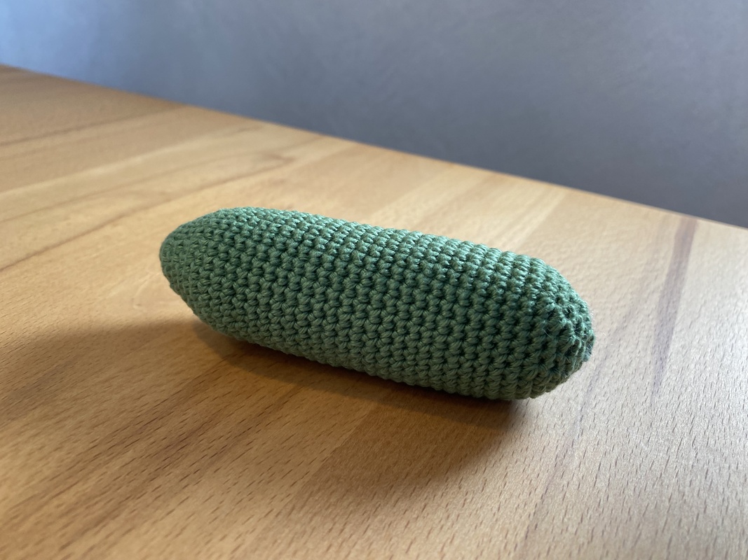 Hier erhältst du eine ausführliche bebilderte Anleitung, um eine Gurke, eine halbe angeschnittene Gurke und Gurkenscheiben (halb & ganz) für die Spielküche, den Kaufladen oder als Küchen-Dekoration selbst zu häkeln.