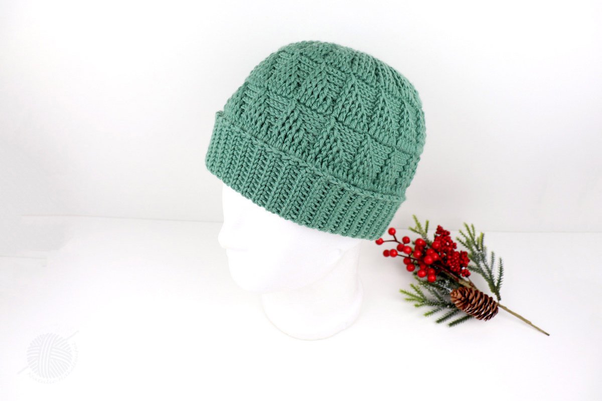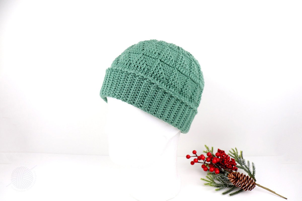 Die PDF-Häkelanleitung besteht aus bebilderter Anleitung zum Häkeln einer Wintermütze mit dem Dreieckfmuster. Die Mütze sieht wie gestrickt aus. Diese Mütze kann sowohl für Kinder, als auch für Erwachsenen gehäkelt werden.