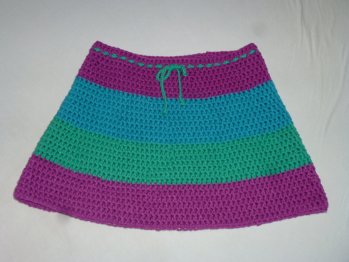 Dieser gestreifte Rock kann natürlich in beliebig verschiedenen Farben gehäkelt werden! Nemen sie die Lieblingsfarben des Kindes und es wird sein Lieblingsrock werden =)!