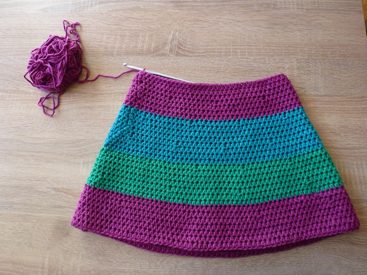 Der Vorteil von der großen Häkelnadel ist, dass man schnell voran kommt und somit der Rock bald fertig ist!