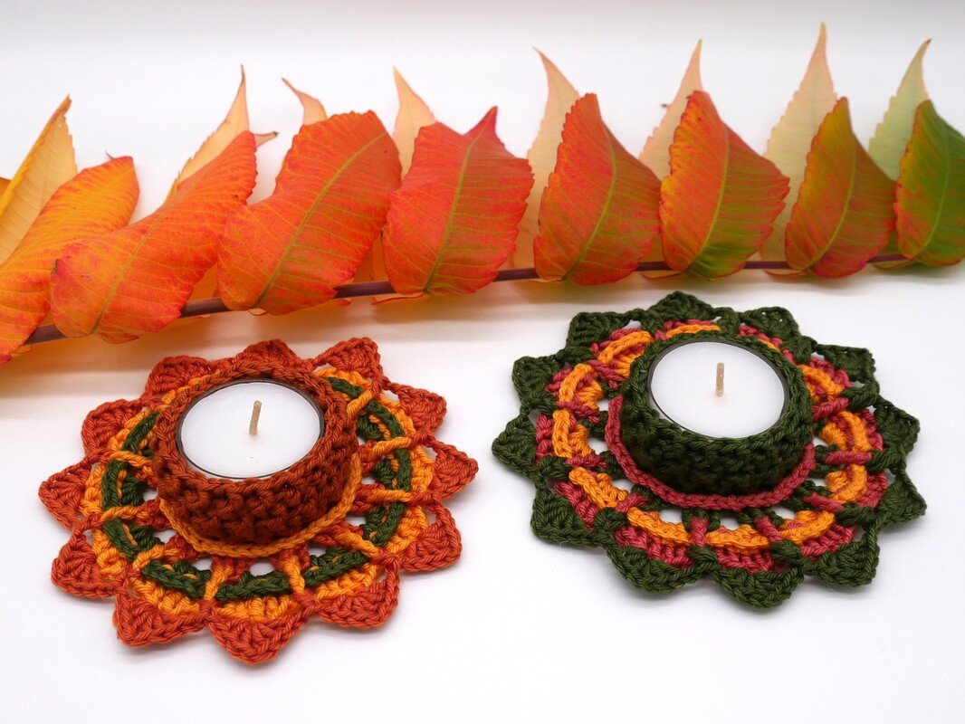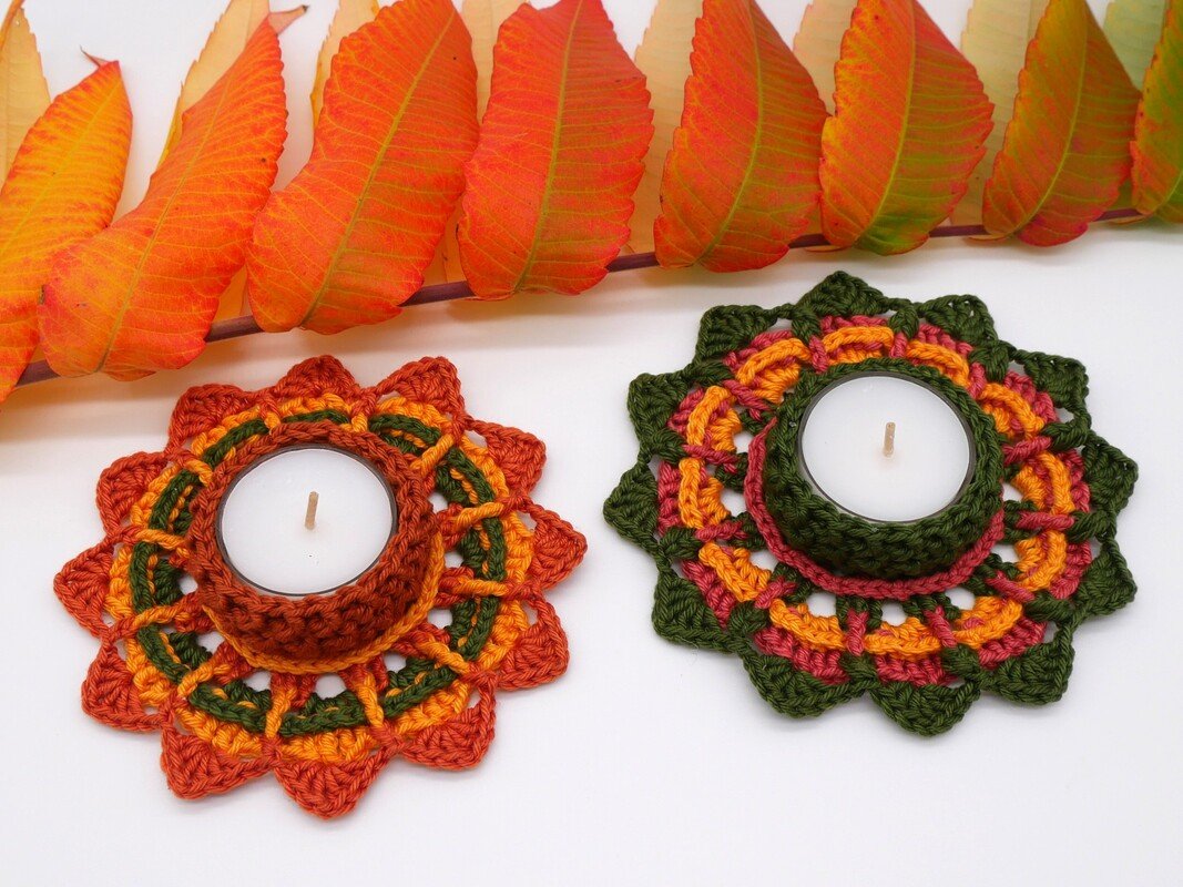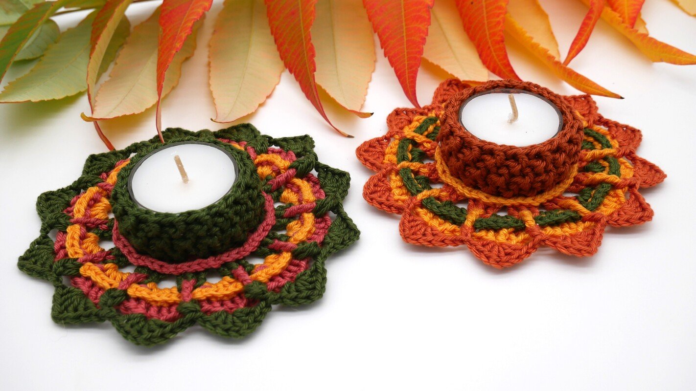Erstelle herbstliches Flair in deinem Zuhause mit diesem wunderschönen Teelichthalter, den du mithilfe dieser ausführlichen Häkelanleitung leicht selber herstellen kannst.
