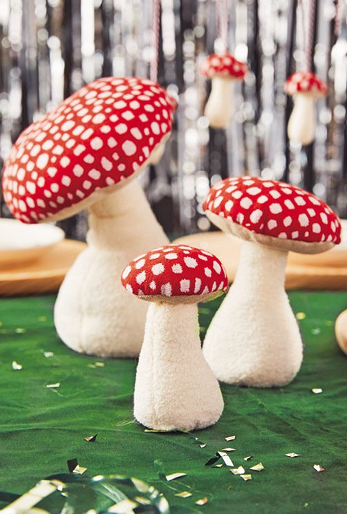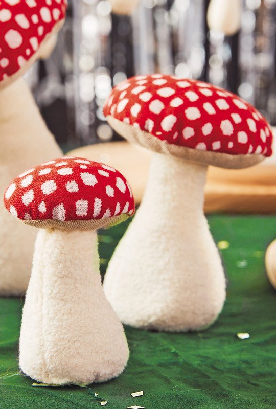 Das gesamte Jahr über, jedoch besonders zum Jahreswechsel, sind Glückspilze überall heiß begehrt. Diese standfesten Exemplare sind aus Deko-Leinen, Baumwollfleece und Strickstoff genäht und eine liebenswerte Deko für Ihr Heim. Das Nacharbeiten gelingt dank der ausführlichen Nähanleitung nebst Schnittteilen auch unerfahreneren Näherinnen. Sind die Pilze zum Aufstellen fertig genäht, kann man für eine bessere Standfestigkeit unten in den Stiel Raps füllen. Der Rest des Stieles wird mit Füllwatte ausgestopft, ebenso der Hut. Im Miniaturformat geben die Fliegenpilze auch als Anhänger eine gute Figur ab. Vielleicht ein nettes Gastgeschenk für die Partygäste?