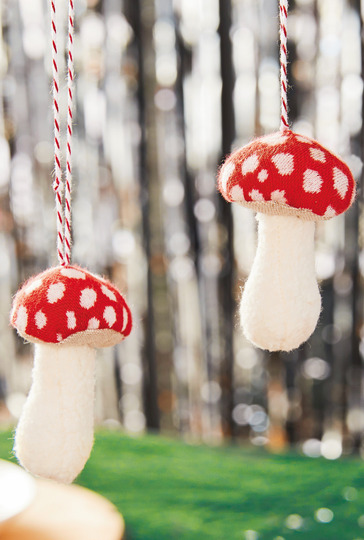 GRÖßE: Glückspilze, stehend: Höhe: ca. 24/18/12 cm, Durchmesser – Hut: ca. 17/12/7,5 cm; Glückspilzanhänger: Höhe: ca. 8 cm Durchmesser – Hut: ca. 4,5 cm