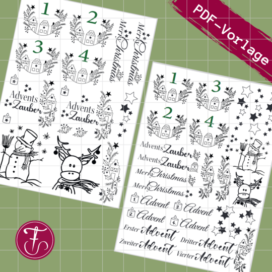 Es sind 2 PDF-Vorlagen enthalten. Die Motive sind hier auf der zweiten Vorlage in einer größeren Größe enthalten, so können Stumpenkerzen mit einem größeren Durchmesser ebenfalls dekoriet werden.