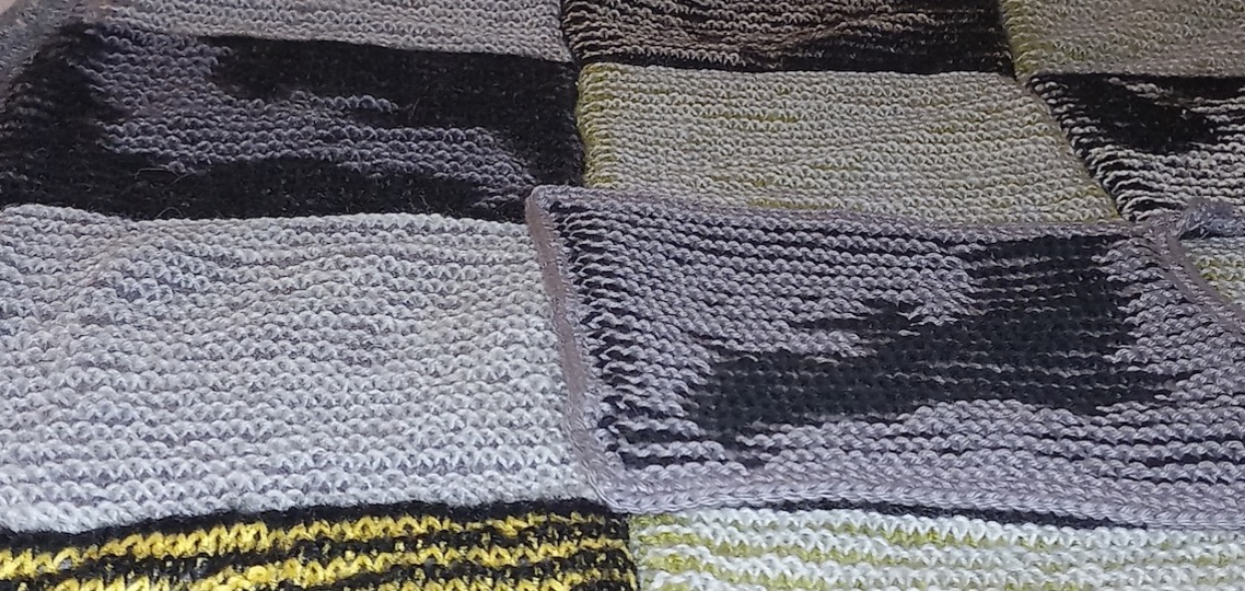 Ihr benötigt jeweils zwei gleichstarke Garne mit relativ gutem Hell-Dunkel-Kontrast (z.B. Schwarz und Grau). Für Topflappen empfiehlt sich 8/8 Baumwollgarn (z.B. Cotton 8/8 von Hobbii).