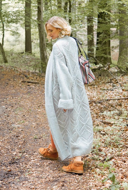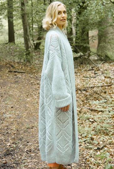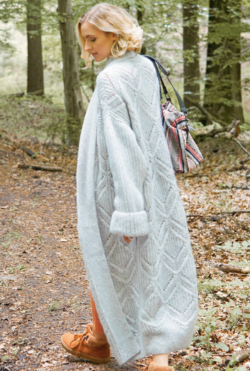 So ein Prachtexemplar sollte jetzt in keiner Wintergarderobe fehlen - der fast knöchellange Mantel macht eine gute Figur. Er wird Sie lange begleiten und immer wieder mit seinen ausdrucksstarken Rautenmotiven begeistern. Er ist ganz in Hellgrau, hat im halbpatent gestrickte Ärmel und ein ausdrucksvolles breites Rautenmuster an Rückenteil und den Vorderteilen, welches nach Anleitung super easy nachzuarbeiten ist. **Glatt rechts gestrickt ist der breite Schalkragen an den Vorderteilen und Halsausschnitt. Eine Anleitung gibt es für die Größen 36/38 (40/42) 44/46.**