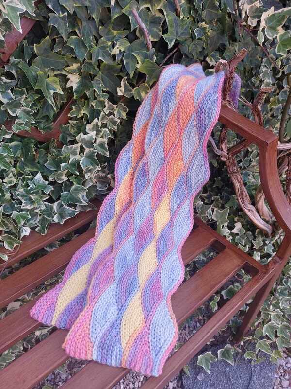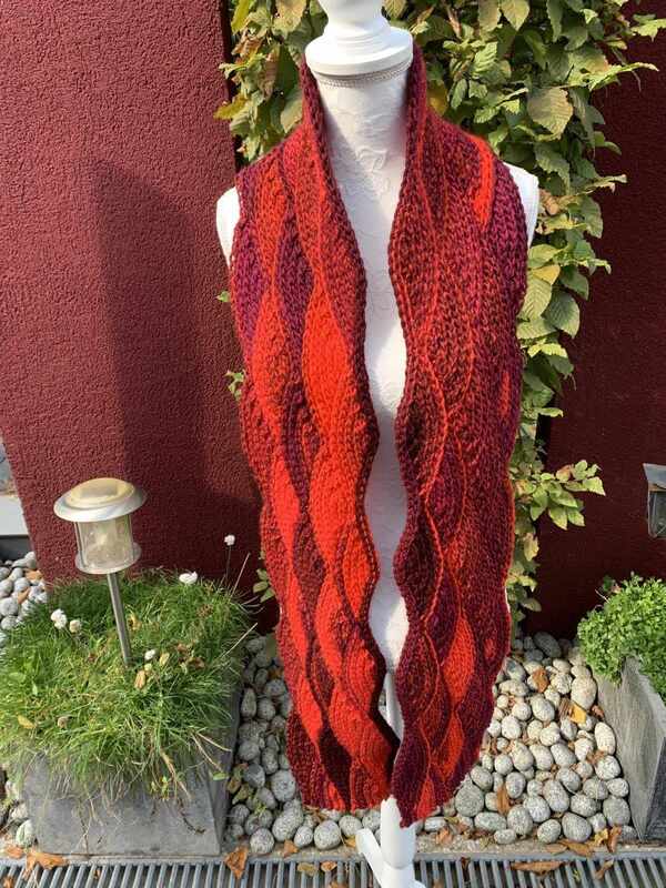 Ein Häkelschal im Stricklook mit Wellenmuster.