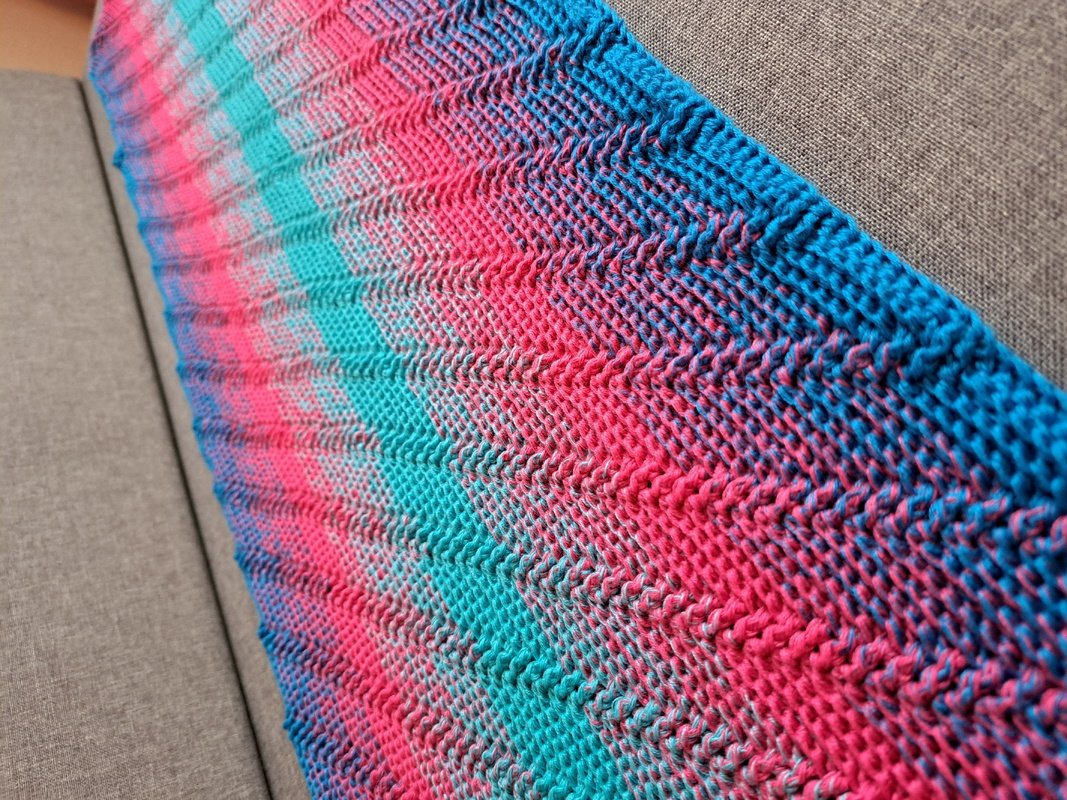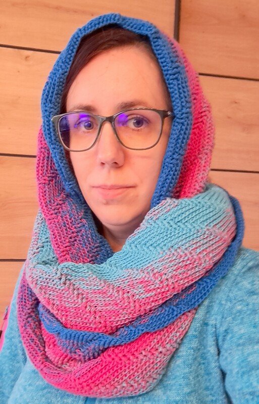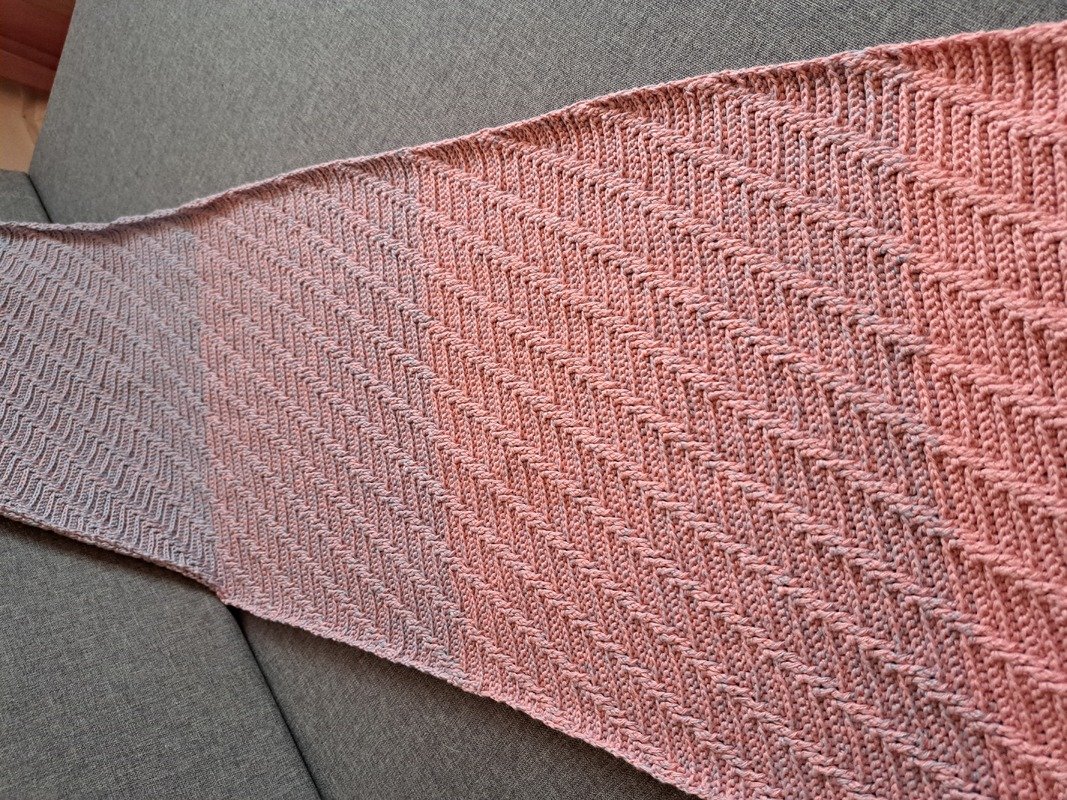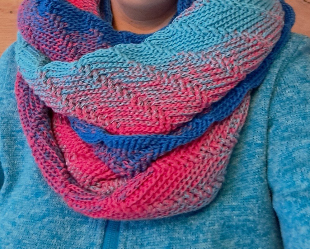 Das Muster ist leicht zu lernen und prägt sich nach kurzer Zeit ein, so dass der Schal/Loop auch fernsehtauglich ist.