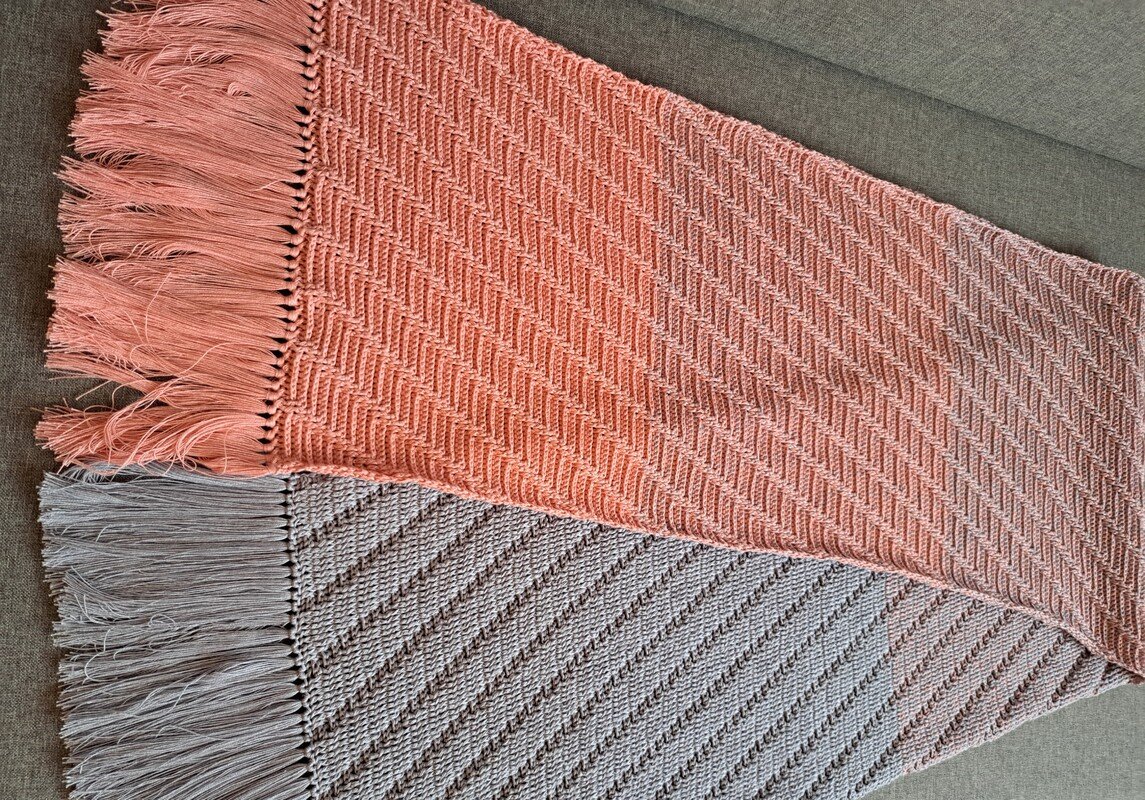 Das Häkelstück besteht aus einem Muster, welches sich in jeder Reihe um eine Masche versetzt wiederholt. Auf jeder Seit entsteht ein eigenes schönes Muster.