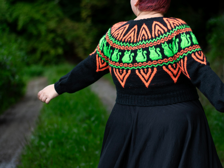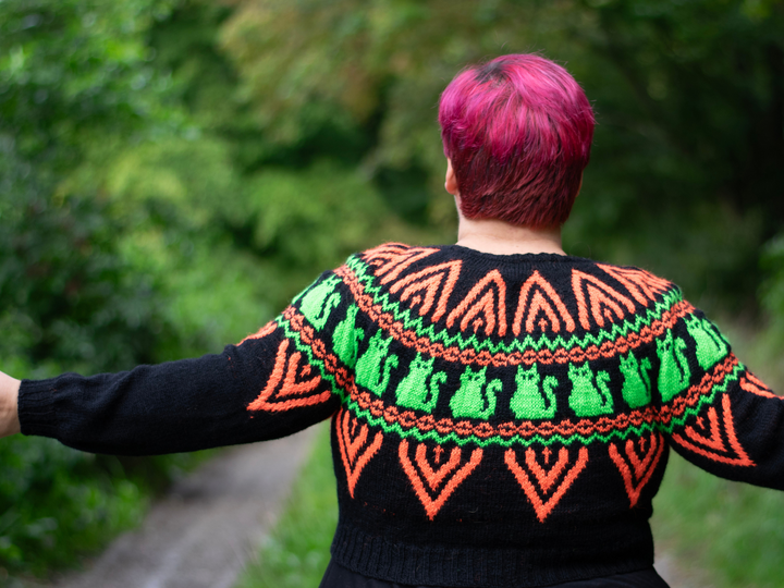 Abgesehen von einer Größenspanne von 76 cm bis 164 cm (Brustumfang des Trägers, Maß des Pullis größer), enthält die Anleitung Abwandlungen für verschiedene Abschnitte (Rundpassenlänge, Ärmel, Brustkeil, Körper). Außerdem sind die Größen alle einzeln berechnet, und nicht wie in der Industrie in alle Richtungen - also auch in der Länge skaliert (Hey! Nur weil man eine größere Größe trägt, ist man ja nicht automatisch auch 30cm größer!). Die Abwandlungen sind aber für alle Körperformen geeignet, egal ob dünn oder dick, klein oder groß.