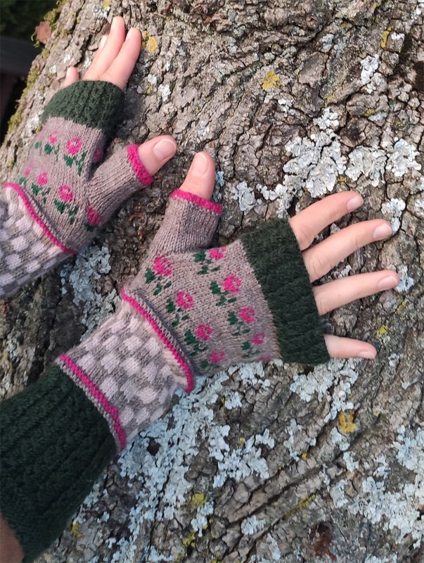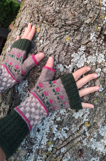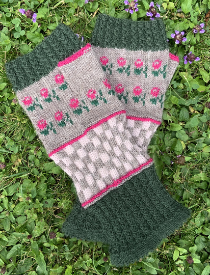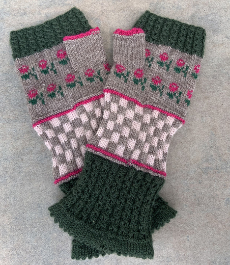 Röschen sind immer dekorativ. Und so entstanden diese Armstulpen mit dem Röschenmuster, die nicht nur zu Trachtenkleidung ganz wunderbar zu tragen sind.