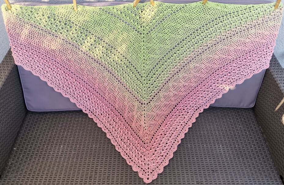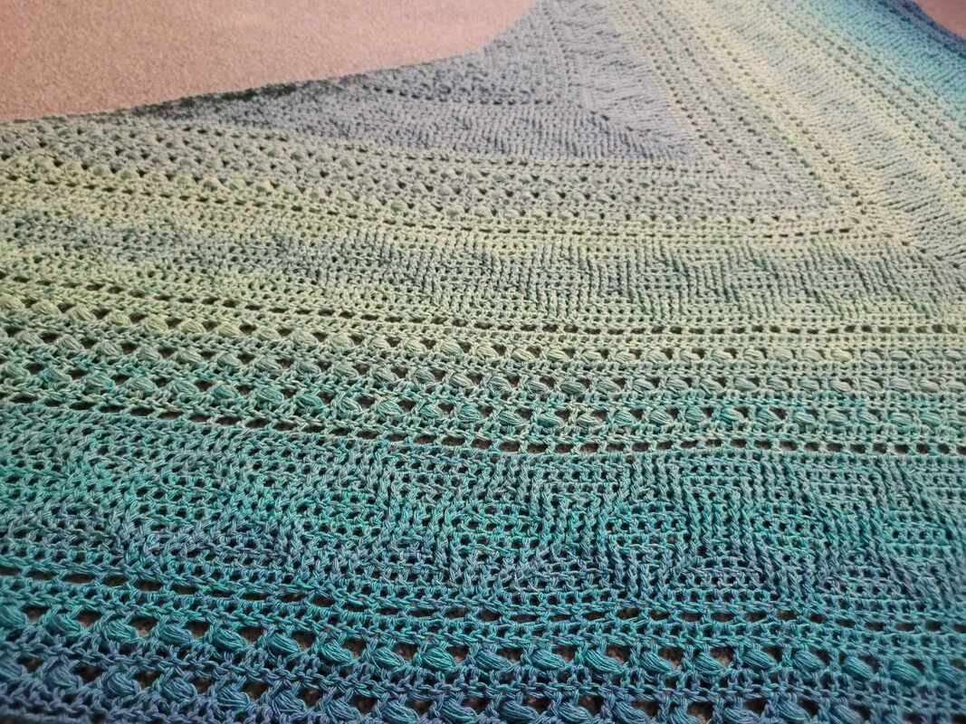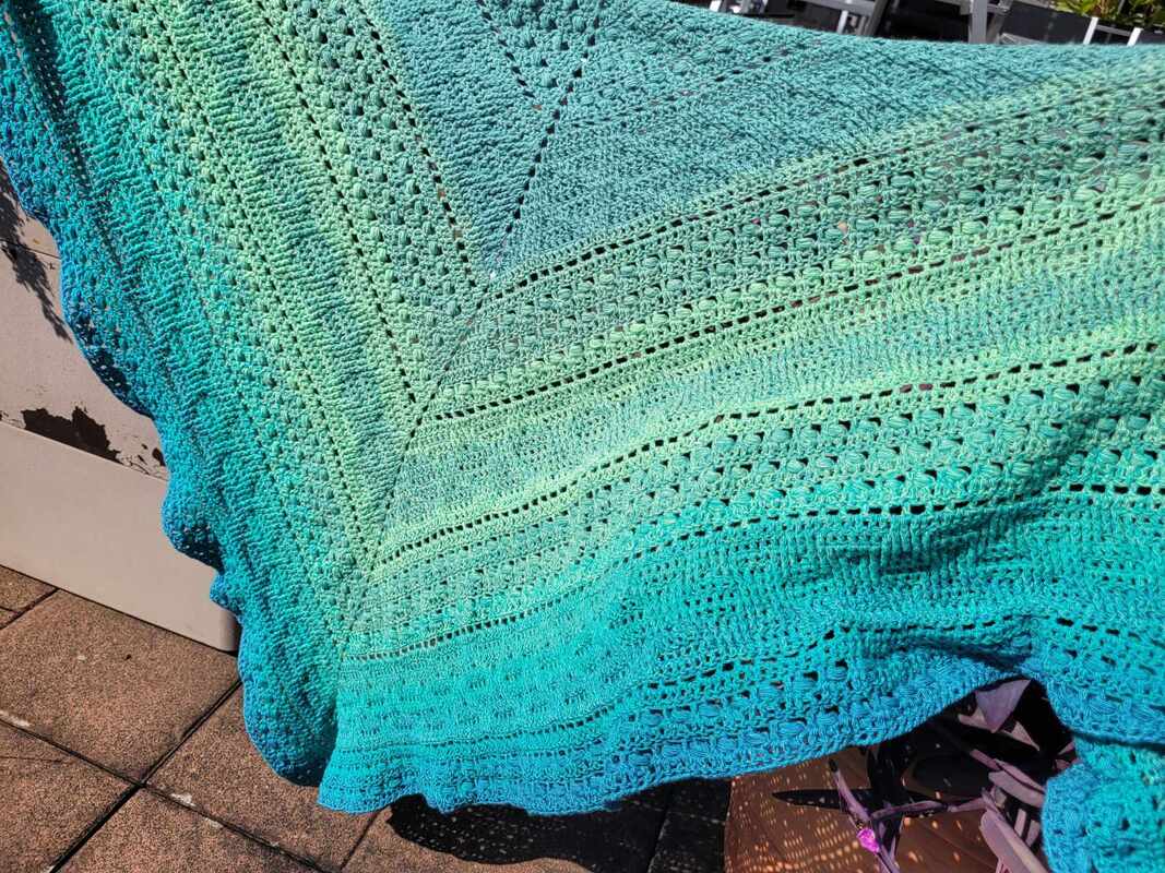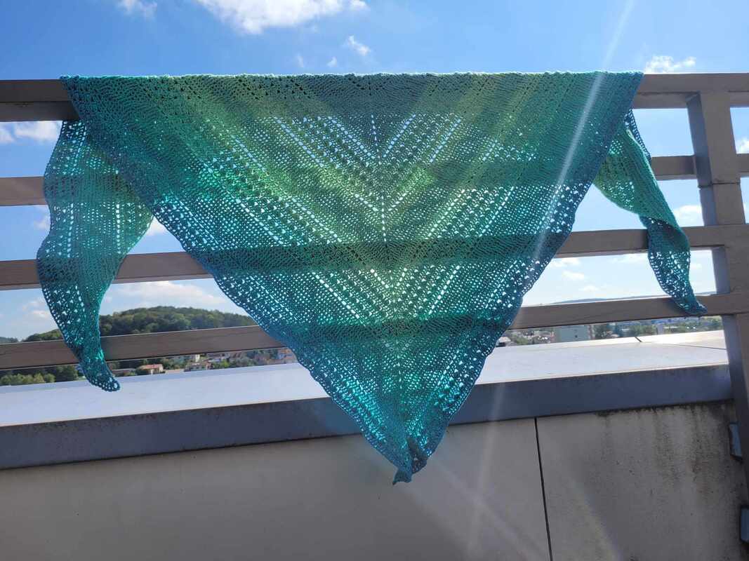 Das Tuch wurde bei einem Verbrauch von 1500/4 Modal mit Nadelstärke 4.0 ca 226x96cm groß.