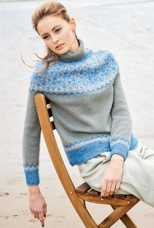 Die Anleitung für diesen Pullover ist in den Größen 36/38 (40) und 42/44 verfügbar.