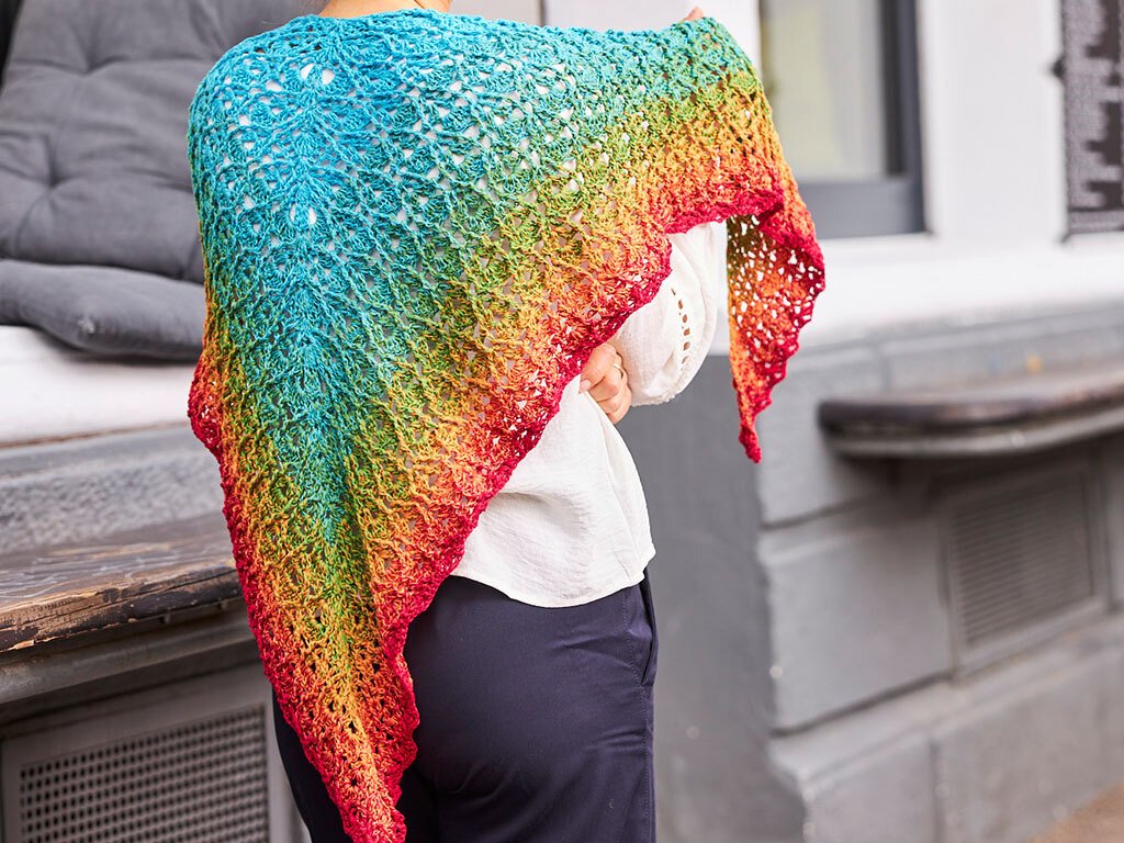 Gehäkelte Tücher sind ein zeitloser Klassiker, der immer modern bleibt. Dieses Tuch mit Relief-Muster und Farbverlauf ist ein echter Hingucker und passt zu jedem Outfit.