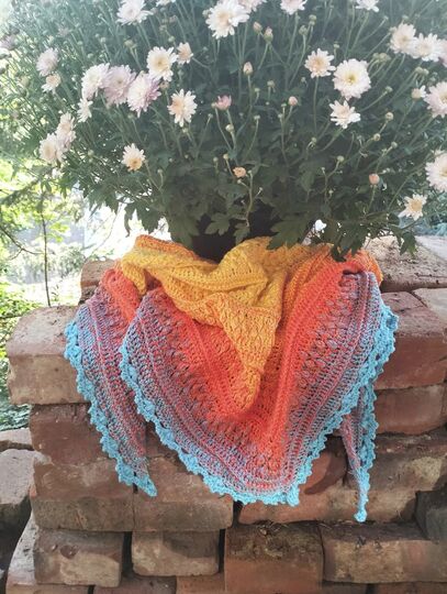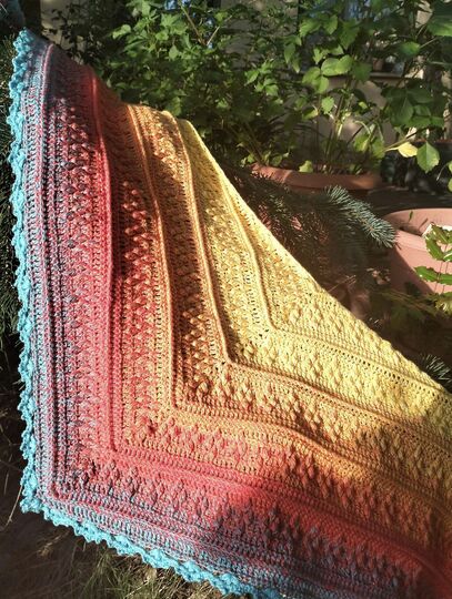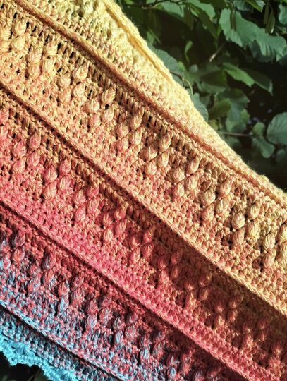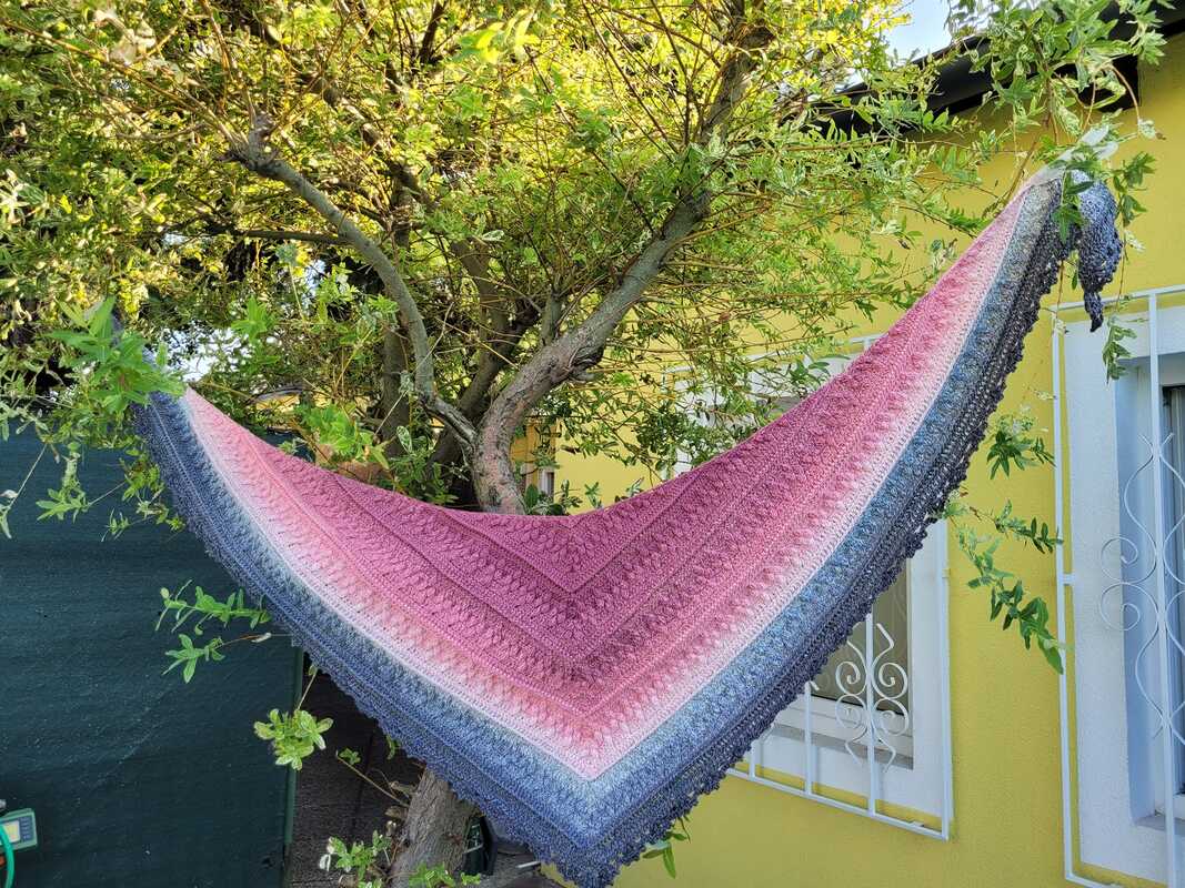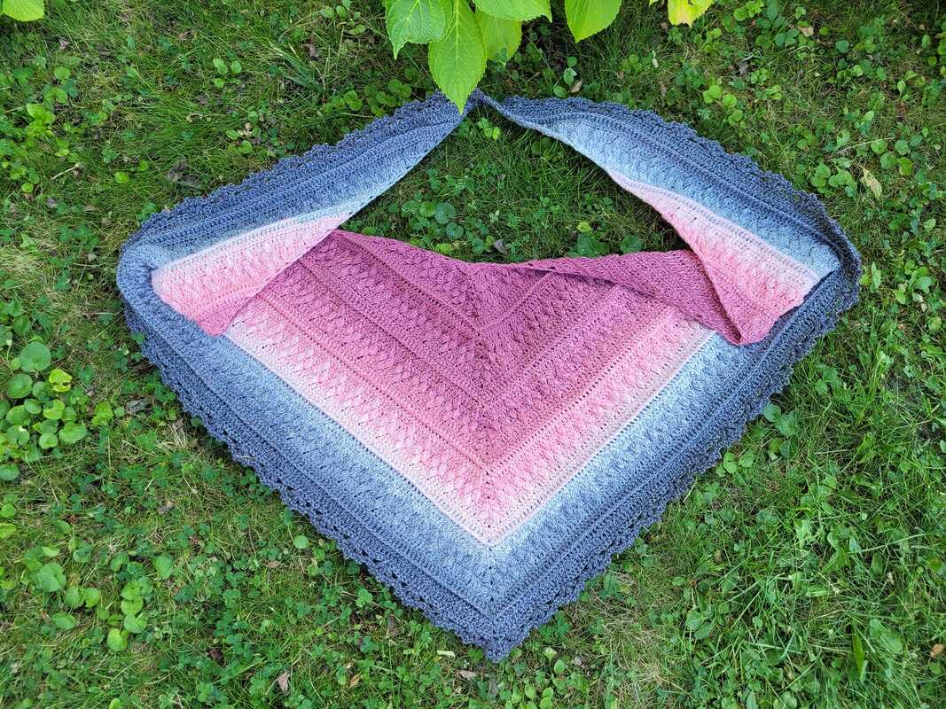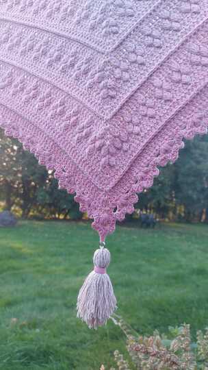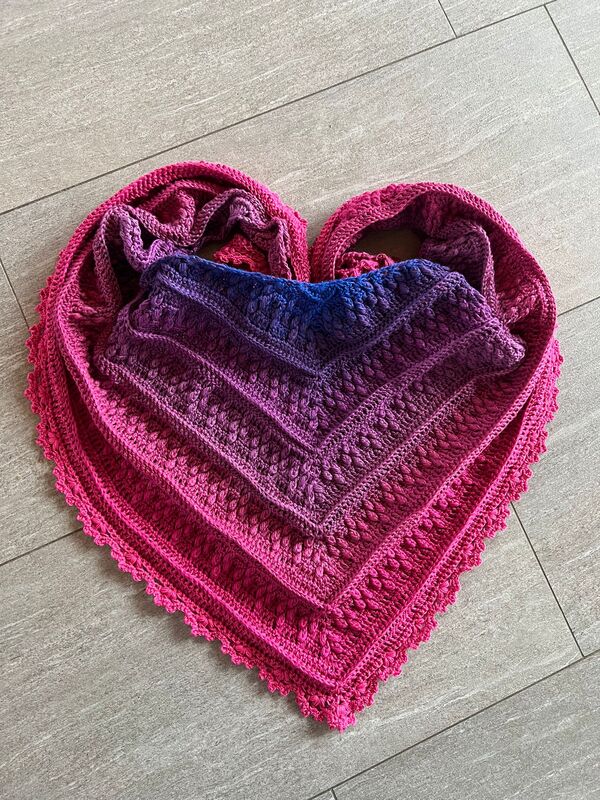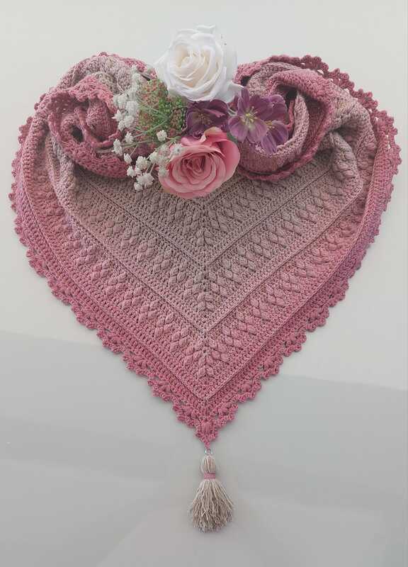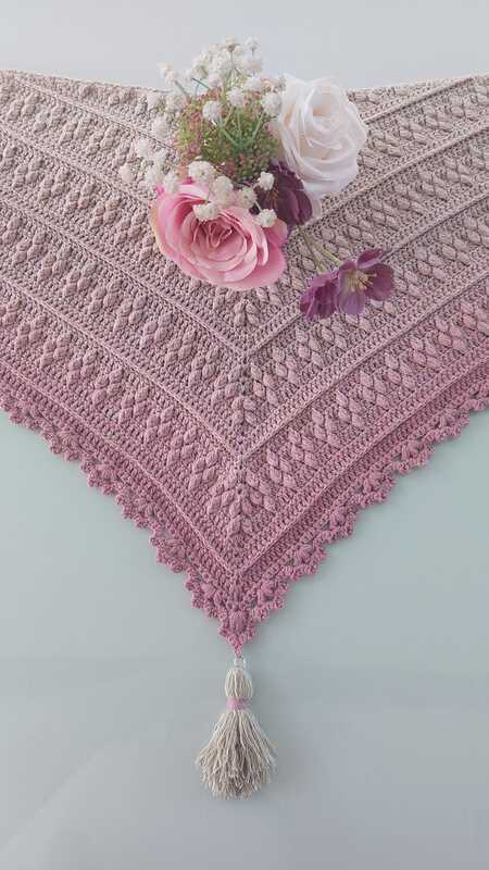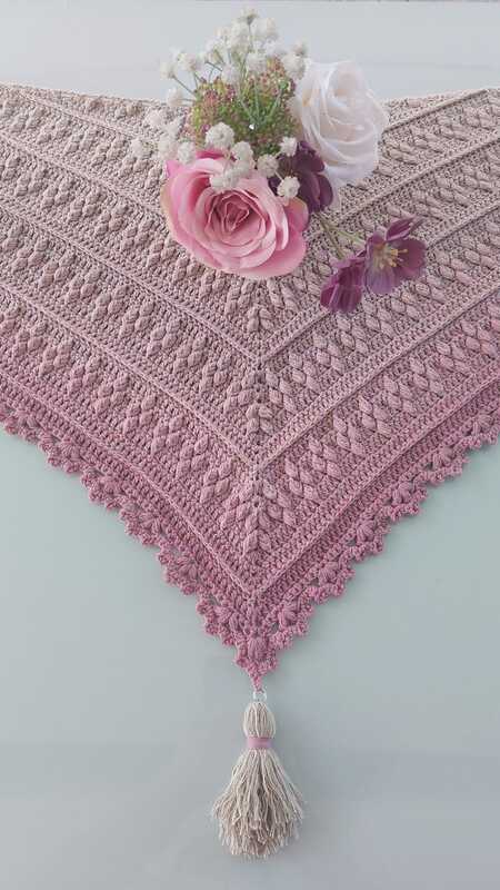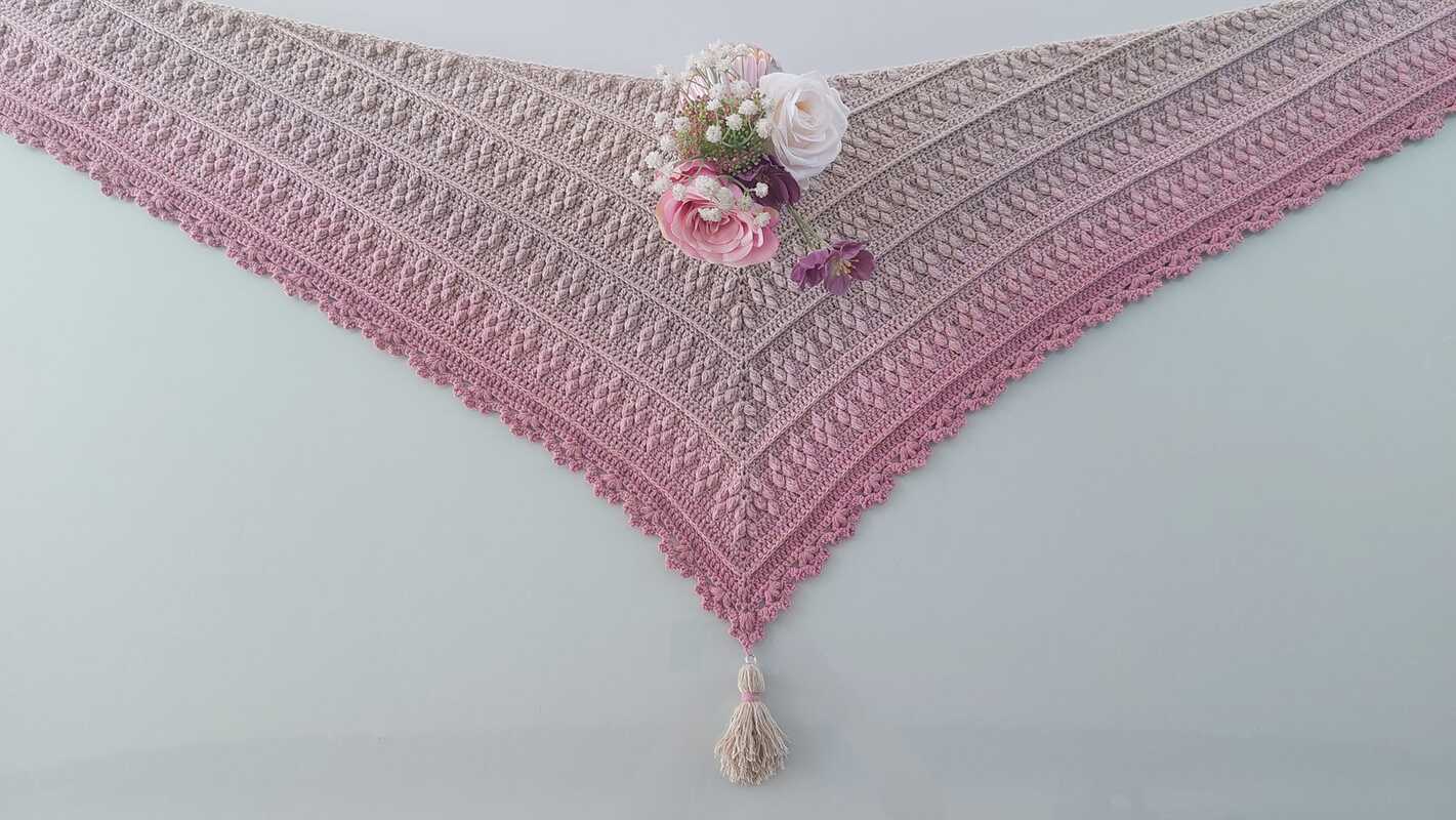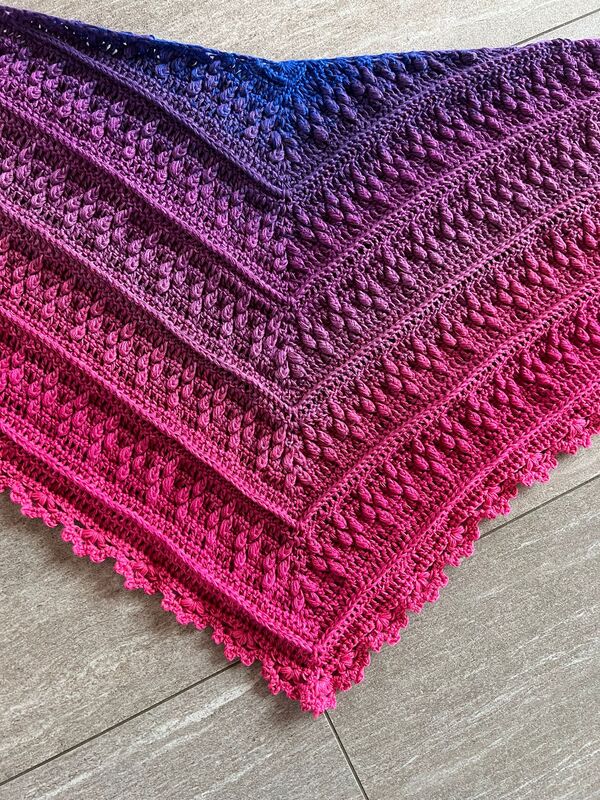 Entdecke mein brandneues Dreieckstuch "Esfera"! Diese Anleitung wurde von mir erstellt und bietet ein dichtes Muster mit Relief Büschelmaschen, das deinem Tuch eine einzigartige Textur verleiht.